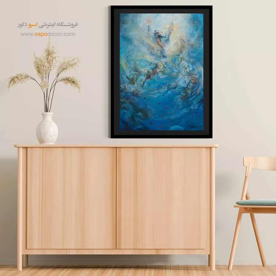 - ایجاد آرامشِ بصری: غلبهی رنگ آبی در این اثر، علیرغم موضوع حماسیاش، آرامشی عجیب به محیط میبخشد و برای فضاهایی که نیاز به سکوت و تأمل دارند، مناسب است.