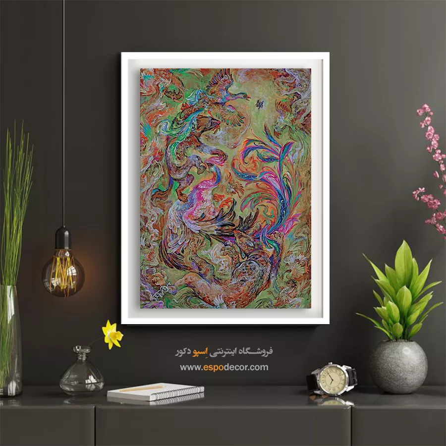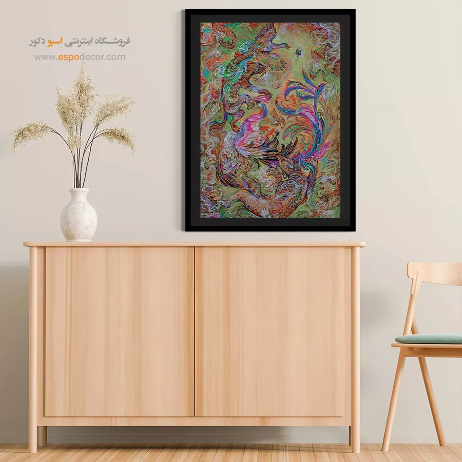 این اثر به دلیل انرژیِ بصریِ فوقالعادهاش، فضای محیط را دگرگون میکند:- مناسب برای فضاهای مدرن و بوهمین: اگر دکوراسیونی رنگارنگ، هنری یا جسورانه دارید، این تابلو با پالتِ رنگیِ غنیِ خود، گزینهای بینظیر برای تکمیلِ چیدمان شماست.