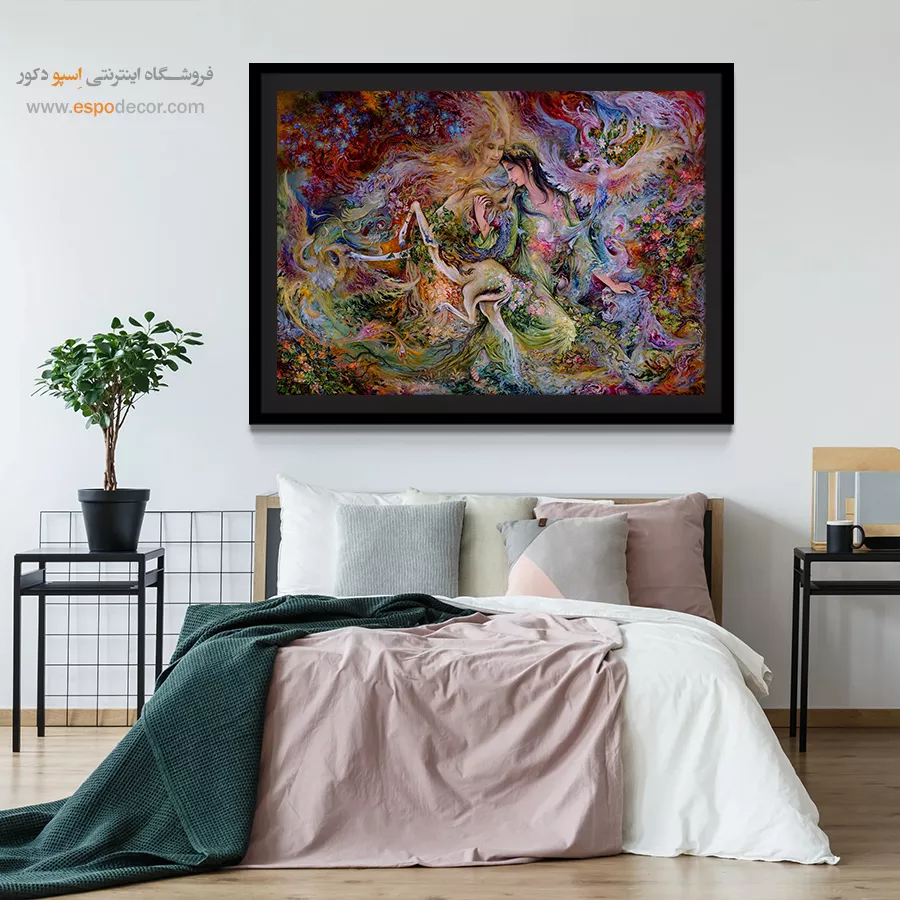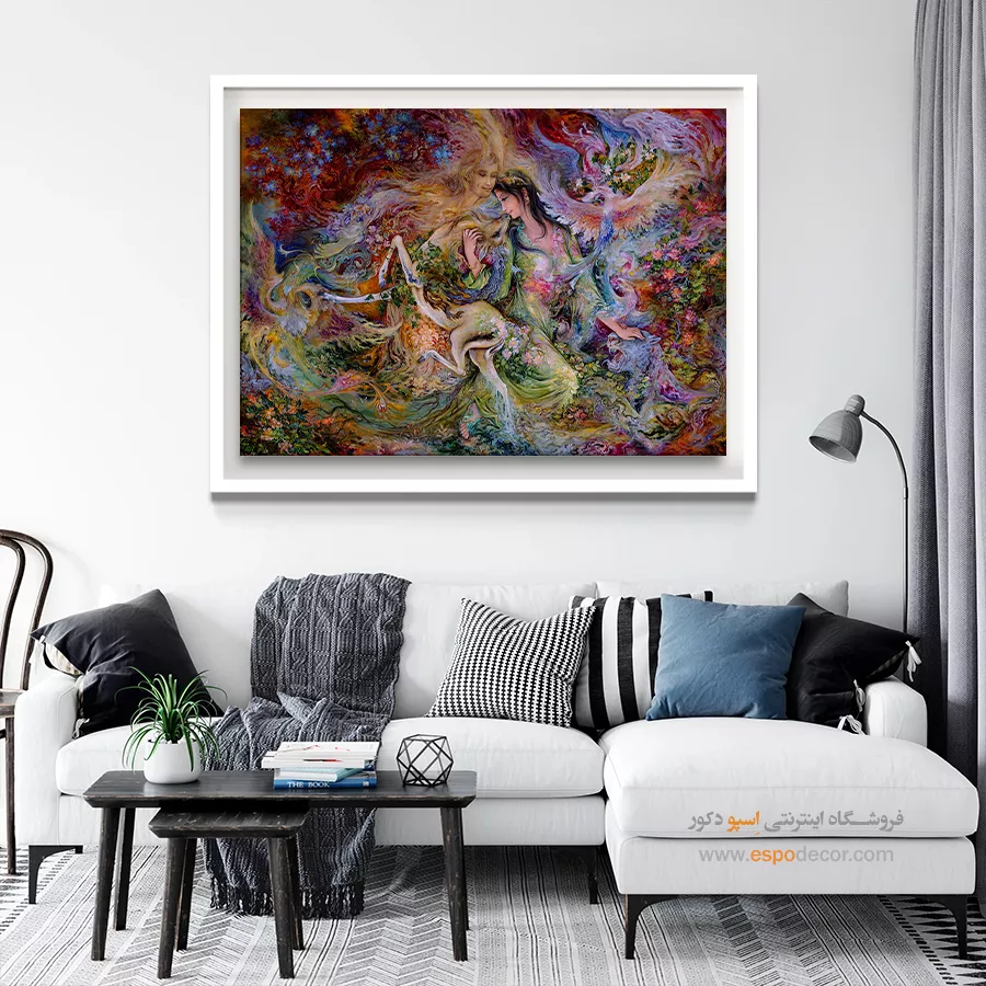 این تابلو به دلیل حسِ عاطفیِ قوی، تأثیرِ مستقیمی بر اتمسفرِ خانه دارد:- بهترین انتخاب برای اتاق خواب: فضای رمانتیک و آرامِ این اثر، آن را به گزینهای ایدهآل برای نصب در اتاق خواب (بهویژه بالای تخت) تبدیل کرده است.