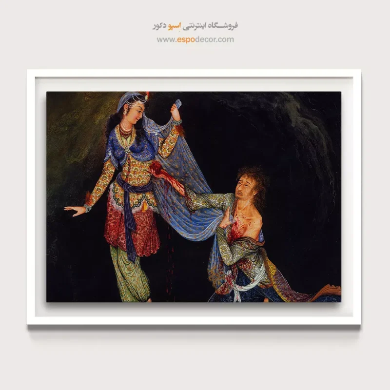 تابلو نقاشی «من عاشقی هستم که قلب شکستهام شاهد آن است»، اثری است که مرزهای استعاره را میشکند و حقیقتِ دردناک و زیبای عشق را به نمایش میگذارد. در این اثرِ بینظیر از استاد محمود فرشچیان، عاشق تنها به سخن گفتن اکتفا نمیکند؛ او قلبِ تپنده و خونینِ خود را از سینه بیرون کشیده و به معشوق تقدیم میکند. این تابلو، اوجِ شیدایی و فداکاری را در فضایی تاریک و متمرکز روایت میکند. ما در اسپو دکور، این اثرِ تأثیرگذار را برای کسانی که عشق را مقدسترین رخدادِ هستی میدانند، با کیفیت چاپی که سرخیِ خون و درخششِ لباسها را به خوبی نشان میدهد، آماده کردهایم.تحلیل هنری و نمادشناسی اثر