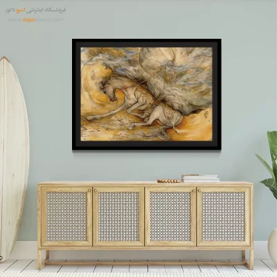 - انتخاب رنگهای مکمل یا متضاد: مانند تابلویی با تناژ نارنجی برای دیوار آبی، که تضاد جذاب و پویایی ایجاد میکند و تابلو را به نقطه کانونی تبدیل میکند.