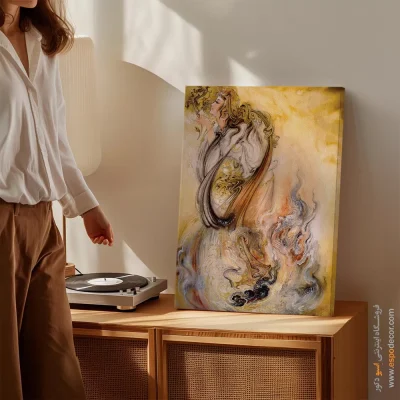 - ادامه طرح اصلی تا کنارههای بوم: ما در اسپو دکور از این روش استفاده میکنیم تا تابلو حالت منسجم و یکپارچه داشته باشد و از نمای کناری نیز جذاب دیده شود.