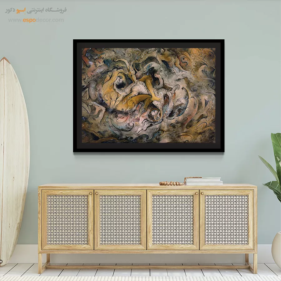 • ادامه طرح اصلی تا کناره‌های بوم: ما در اسپو دکور از این روش استفاده می‌کنیم تا تابلو حالت منسجم و یکپارچه داشته باشد و از نمای کناری نیز جذاب دیده شود.