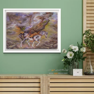- ادامه طرح اصلی تا کنارههای بوم: ما در اسپو دکور از این روش استفاده میکنیم تا تابلو حالت منسجم و یکپارچه داشته باشد و از نمای کناری نیز جذاب دیده شود.