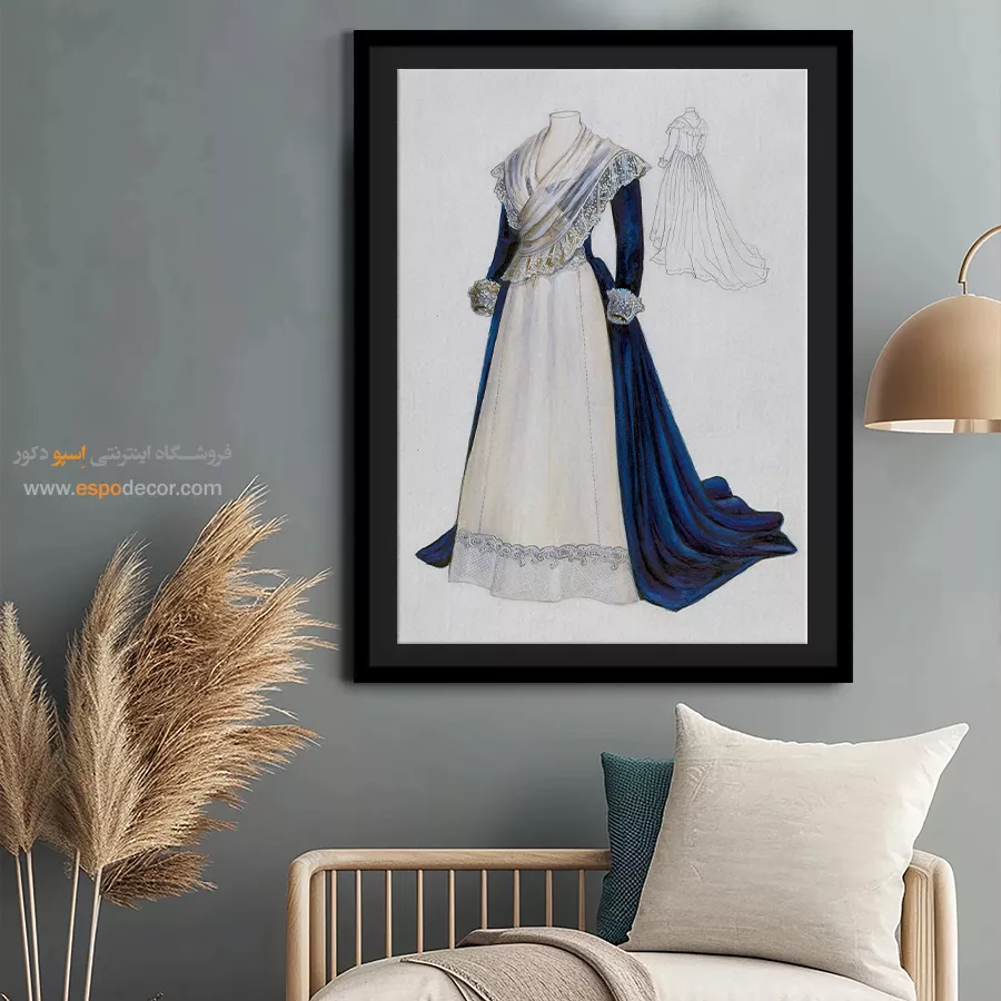 - انتخاب سایههای مختلف از رنگ دیوار: مانند تابلو آبی تیره روی دیوار آبی روشن، که حس آرامش و یکپارچگی در فضا ایجاد میکند.