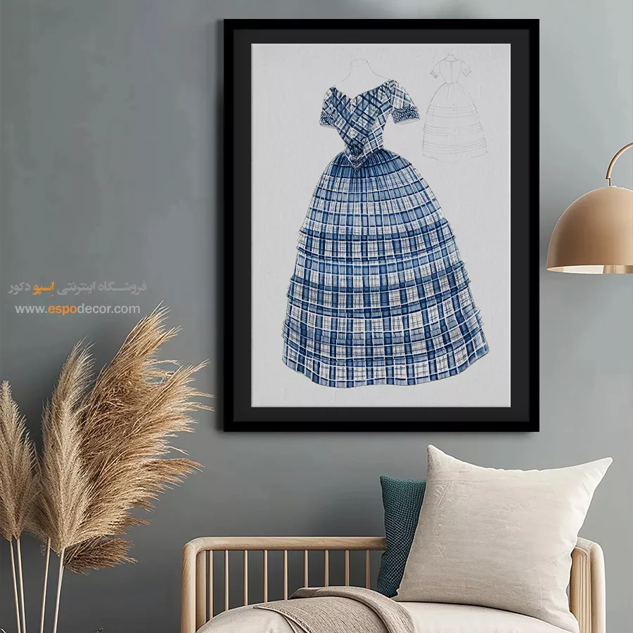 - انتخاب سایههای مختلف از رنگ دیوار: مانند تابلو آبی تیره روی دیوار آبی روشن، که حس آرامش و یکپارچگی در فضا ایجاد میکند.