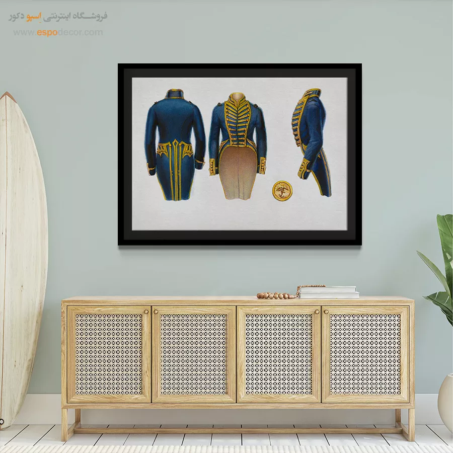 - انتخاب سایههای مختلف از رنگ دیوار: مانند تابلو آبی تیره روی دیوار آبی روشن، که حس آرامش و یکپارچگی در فضا ایجاد میکند.