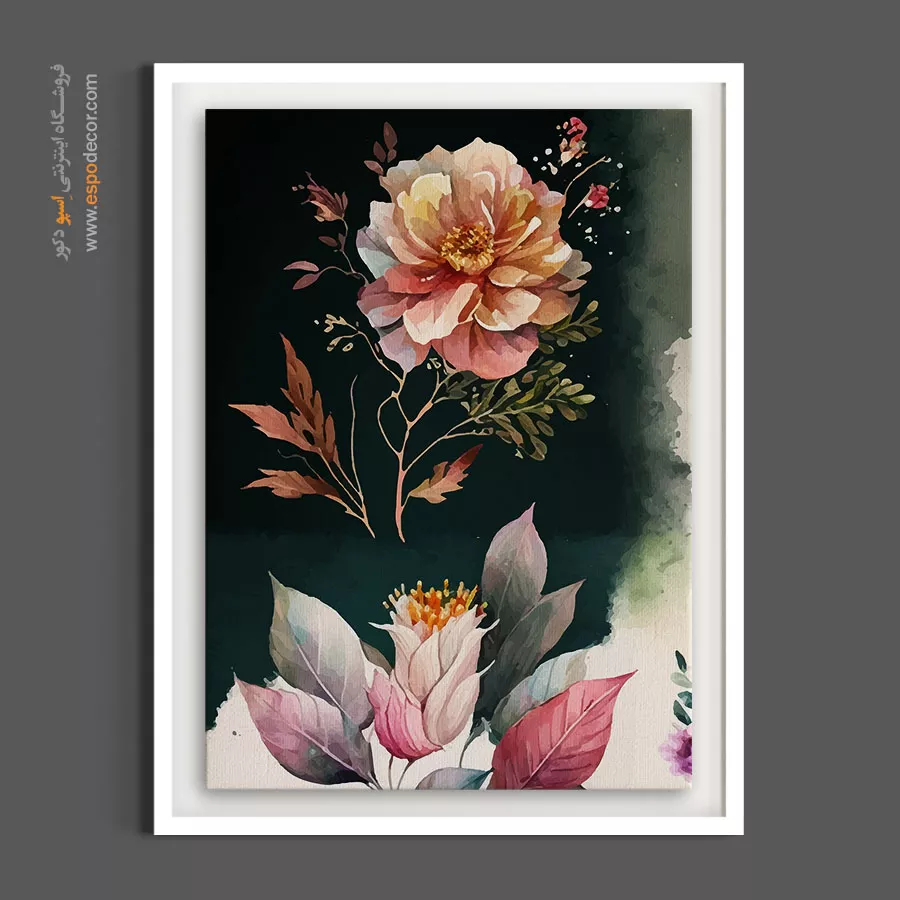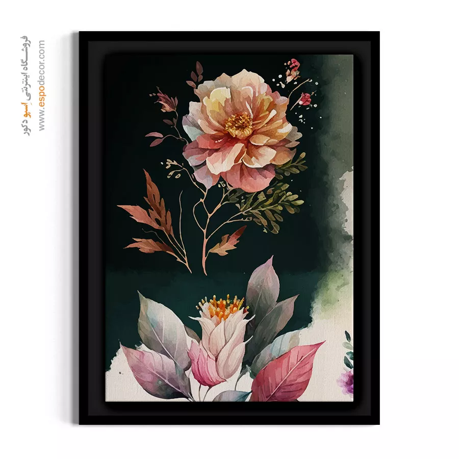 تضاد خیرهکننده میان گلهای صورتی لطیف و زمینه سبز یشمی تیره، این تابلو را به نقطه کانونی دکوراسیون شما تبدیل میکند. چاپ روی بوم بافتدار، حس نقاشی دستی را تقویت کرده است.