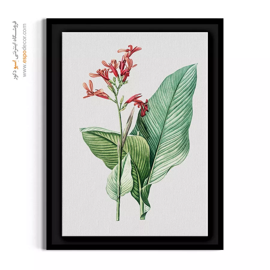 تضاد زیبای گل‌های قرمز ظریف با برگ‌های پهن و سبز رنگ، جلوه‌ای باشکوه به این تابلو داده است. این اثر هنری برای فضاهایی که نیاز به رنگ و انرژی دارند، مثل اتاق پذیرایی یا راهروها، انتخابی ایده‌آل است.