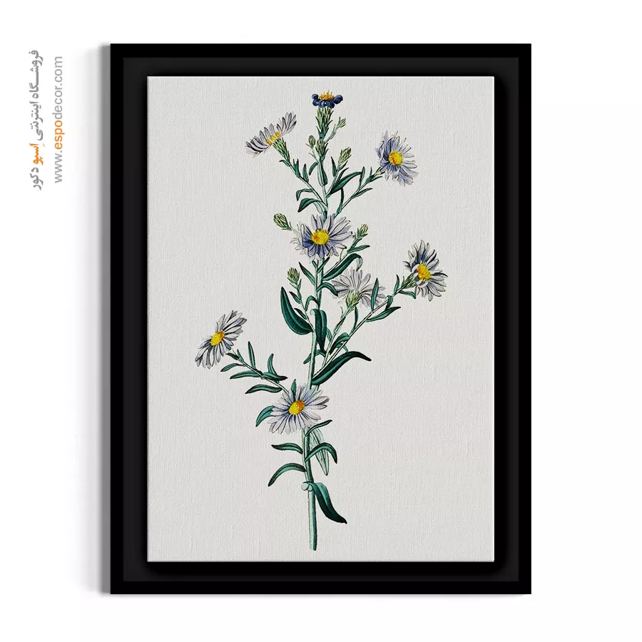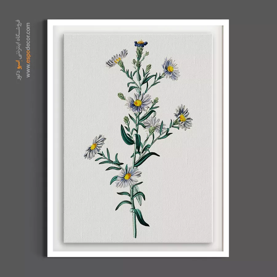 ساقهای بلند از گلهای وحشی و بابونه که با رنگهای آبی و بنفش خودنمایی میکند. این تابلو نمادی از آزادی و طبیعت وحشی است و برای اتاق خواب یا فضای نشیمن روشن بسیار مناسب است.