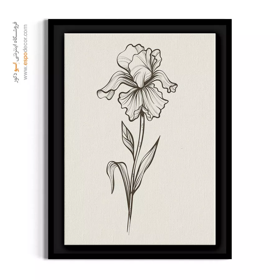گلبرگهای مواج و زیبای زنبق در این طراحی مدادی به ظرافت تمام کشیده شدهاند. زمینه کرمرنگ (Sepia) آن، گرمای خاصی دارد که با مبلمان چوبی و پارچههای کتان عالی ست میشود. پیشنهاد میکنیم این کار را با قاب چوبی باریک سفارش دهید.