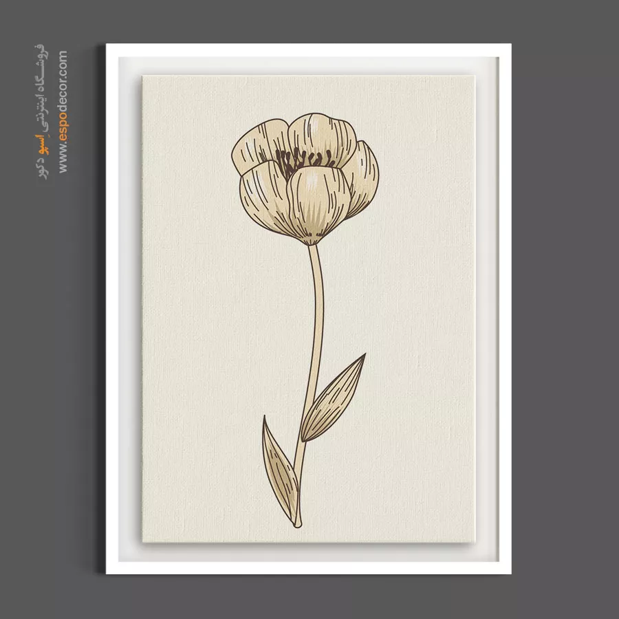 فرم گرد و بستهی این غنچه لاله با خطوط عمودی روی گلبرگها، حجم و بُعد زیبایی پیدا کرده است که حسی از تکامل و وقار را ساطع میکند. این تابلو ساده و باوقار، مخصوص کسانی طراحی شده است که به دنبال شلوغی نیستند و زیبایی حقیقی را در سادگی مطلق جستجو میکنند. هنرمند با تمرکز بر روی فرم بیضوی غنچه، توانسته است آرامشِ پیش از شکوفایی را به تصویر بکشد. بافت طبیعی پارچه بوم نقاشی به خطوط عمودی طرح عمق بخشیده و سطح کاملاً مات آن مانع از بازتاب نور میشود تا سنگینی و وقار غنچه لاله در تمام زوایای دید به درستی درک شود.