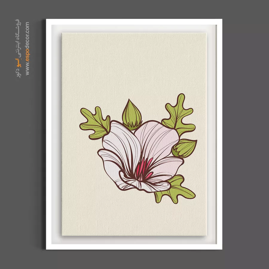 ترکیب رنگ صورتی ملایم با سبز مغزپستهای در این تابلو بوم، فضایی بسیار چشمنواز، شاد و سرشار از طراوت ایجاد کرده است. فرم خاص برگها و خطوط نرمی که با دقت دورگیری شدهاند، به این اثر جلوهای مدرن و فانتزی بخشیده که برای دکوراسیونهای امروزی و جوانپسند انتخابی بیرقیب است. هنرمند با بهرهگیری از روانشناسی رنگهای پاستلی، حسی از آرامش و انرژی مثبت را در بطن اثر جای داده است. بافت طبیعی پارچه بوم نقاشی به لایههای رنگی عمق بخشیده و سطح مات آن مانع از ایجاد بازتاب نور میشود تا لطافت رنگهای صورتی و سبز در تمام زوایا به درستی دیده شوند.