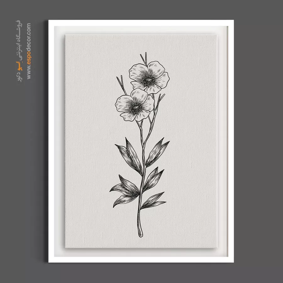 زیبایی این تابلو بوم در ظرافت ساقه‌ها و فرم فنجانی شکلِ منحصربه‌فرد گل‌های آن نهفته است. هنرمند با استفاده از هاشورهای بسیار استادانه در مرکز گل، حسی از عمق و زندگی را در کالبد اثر دمیده است که نگاه هر بیننده‌ای را به خود معطوف می‌کند. این تابلو به دلیل طرح خلوت و مینیمال خود، حسی از آرامش، توازن و سکوت بصری را به محیط القا می‌کند که برای فرار از شلوغی‌های روزمره انتخابی بی‌نظیر است. بافت طبیعی پارچه بوم نقاشی به هاشورهای مرکز گل اصالت بیشتری بخشیده و سطح مات آن اجازه می‌دهد تا این ظرافتِ محض بدون بازتاب نور، بر روی دیوار شما خودنمایی کند.