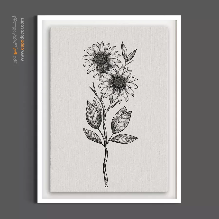 این تابلو به دلیل کنتراست بالای سیاه و سفید و تمِ باوقارش، در کنار مبلمان چرمی (قهوهای یا مشکی) یا پارچههای مخملی جلوهای فوقالعاده پیدا میکند. پیشنهاد میشود برای حفظ اصالت اثر، آن را با قاب چوبی تیره ست کنید. این بوم در اتاق پذیرایی، بالای کاناپه اصلی و یا در فضاهای اداری مدرن، به عنوان یک نقطه کانونی مقتدر عمل کرده و به دیوارها عمق بصری میبخشد. قرارگیری آن بر روی دیوارهایی با رنگ روشن، قدرتِ طراحی آفتابگردان را دوچندان به رخ میکشد.