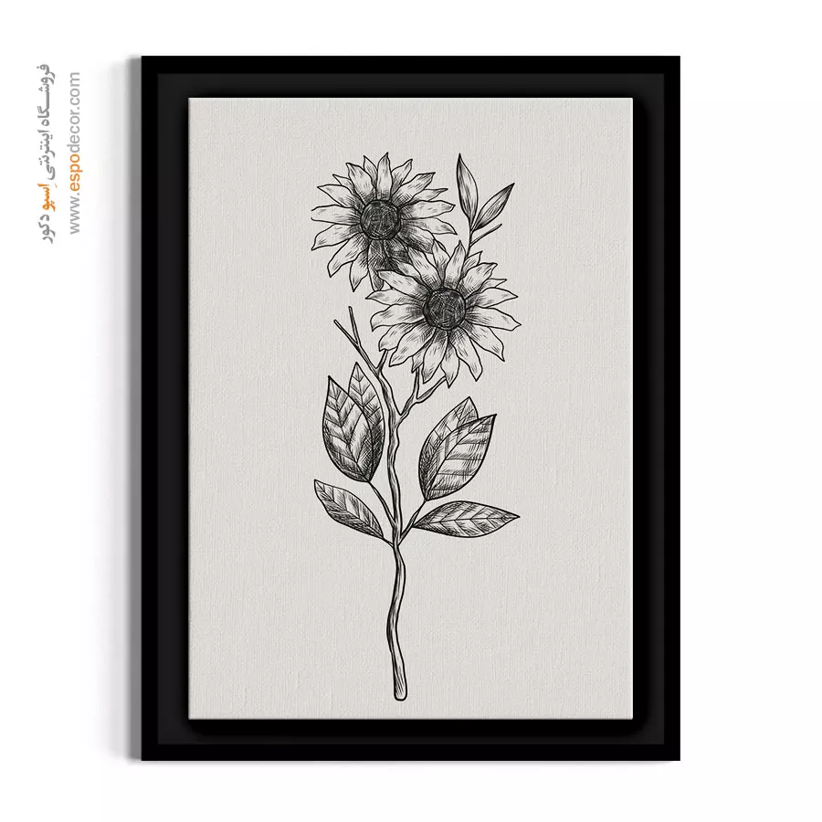 جزئیات دانههای آفتابگردان و گلبرگهای آن با دقت میکروسکوپی طراحی شدهاند. با اینکه سیاه و سفید است، اما حس گرمای خورشید را منتقل میکند. این تابلو در کنار مبلمان چرمی یا مخمل با قاب چوبی تیره فوقالعاده است.