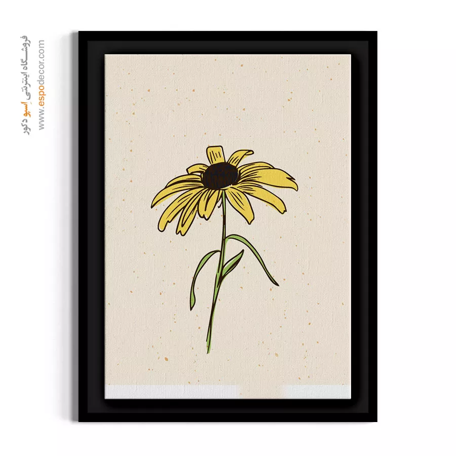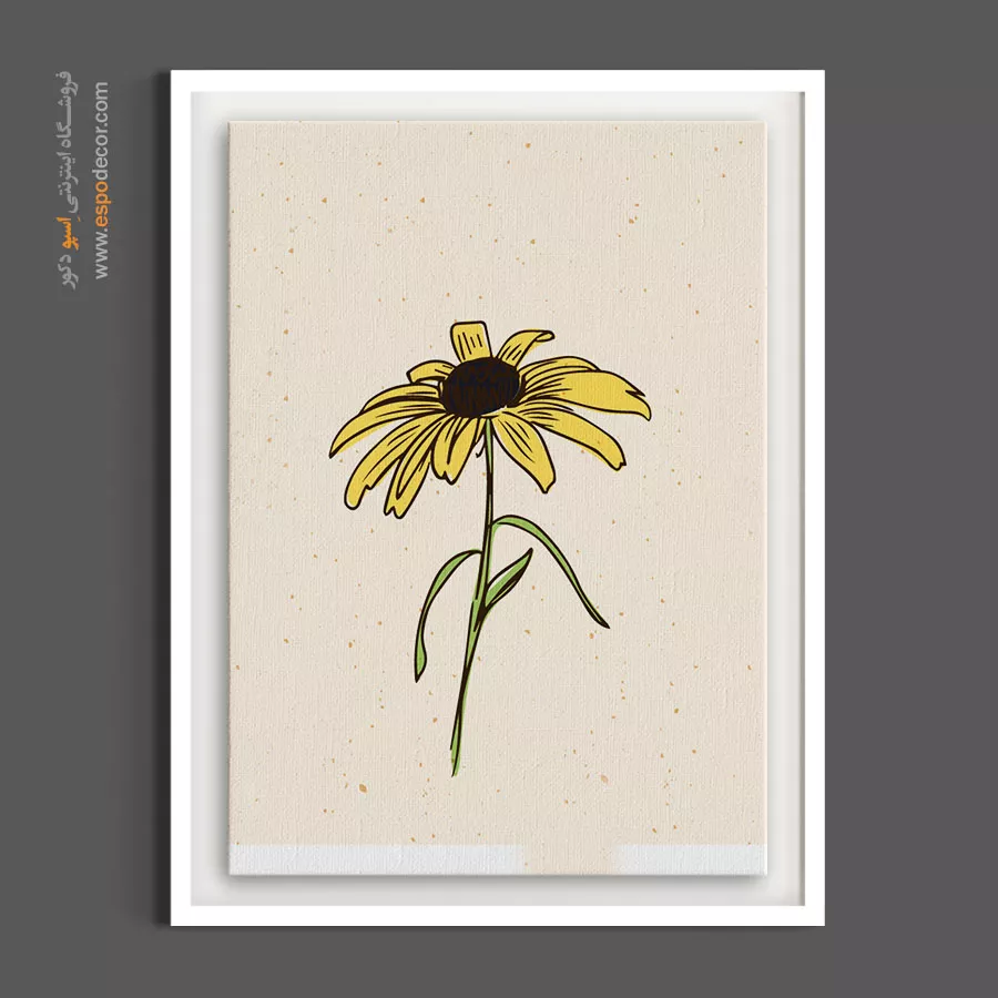 یک گل درشت و زرد که نگاه را به مرکز تصویر می‌کشد. (توجه: پس‌زمینه دارای بافت هنری شبیه کاغذ کاهی است). اگر به دنبال یک تابلوی تک برای کنج اتاق یا روی ستون هستید که در عین سادگی رنگ هم داشته باشد، این بهترین انتخاب است.
