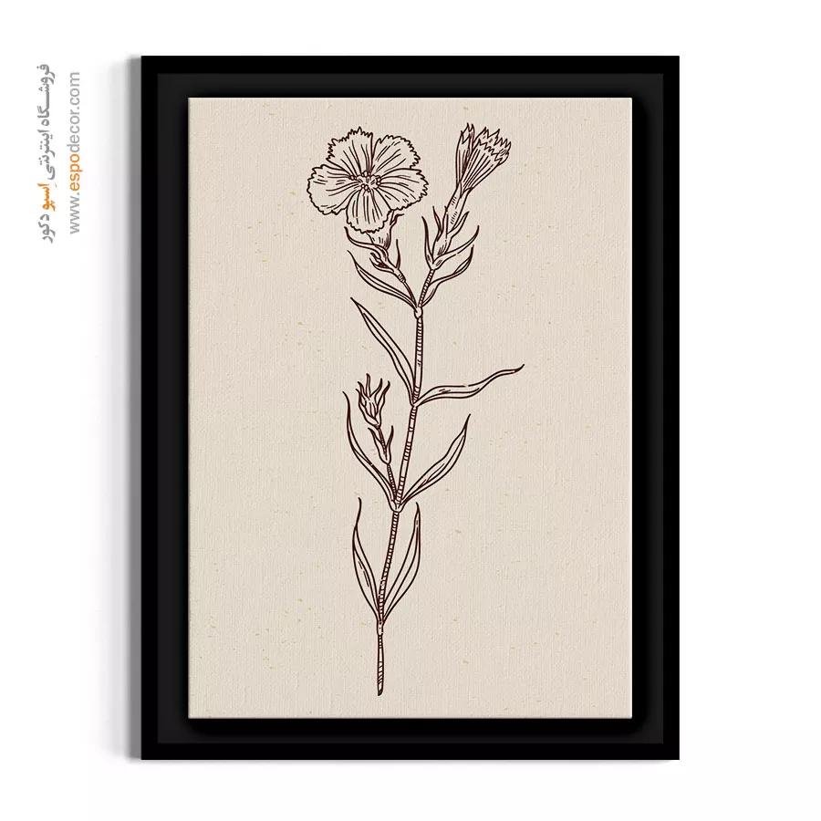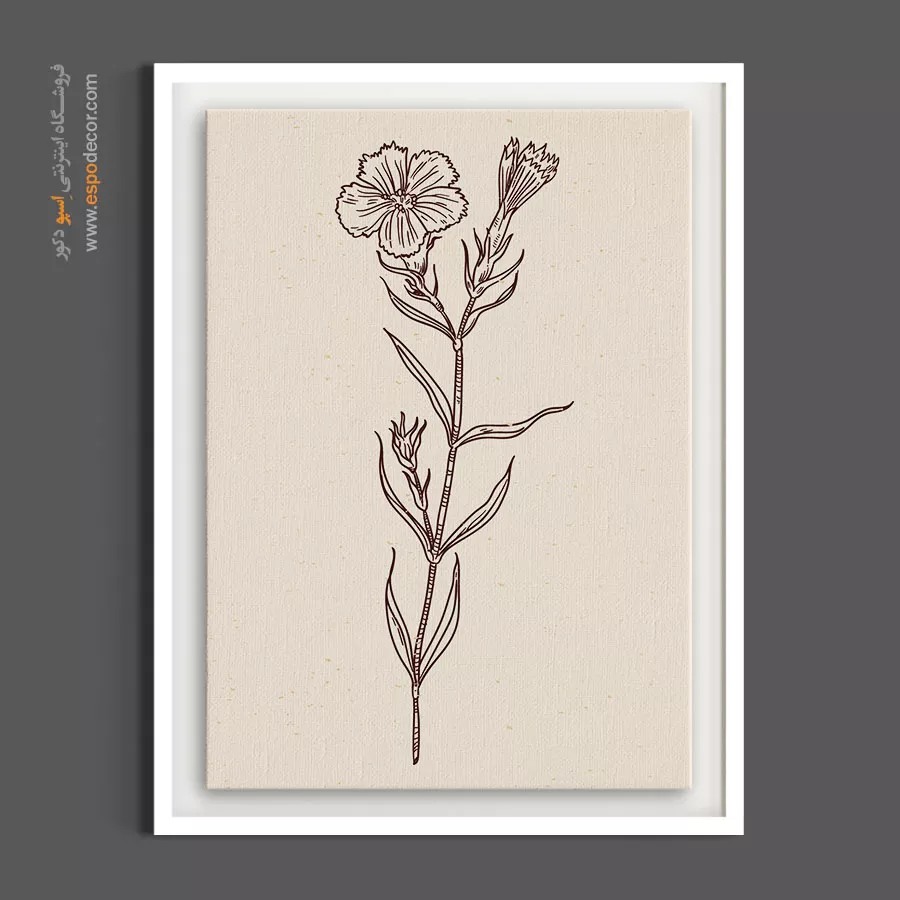 ظرافت گلبرگهای ریز و کشیده در این تابلوی مینیمال، به شکلی بسیار چشمنواز و لطیف طراحی شده است تا حسی از آرامش را به فضای شما تزریق کند. ساقه کمی خمیده در این اثر، حسی کاملاً طبیعی و رئالیستی به طرح بخشیده که گویی شاخه گلی در حالِ تماشای زمین است. هنرمند با پرهیز از شلوغی، بر روی فرم و حرکت گل تمرکز کرده است. بافت طبیعی پارچه بوم نقاشی و سطح کاملاً مات آن، وضوحِ طراحیِ ظریفِ گلبرگها را دوچندان کرده و از بازتابهای مزاحم نور جلوگیری میکند. این تابلو نمادی از صلح و سکون در میان هیاهوی روزمره است.