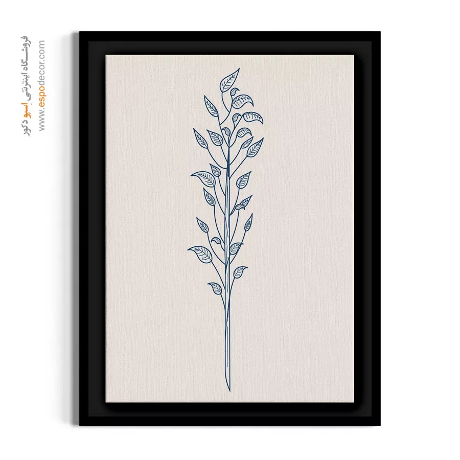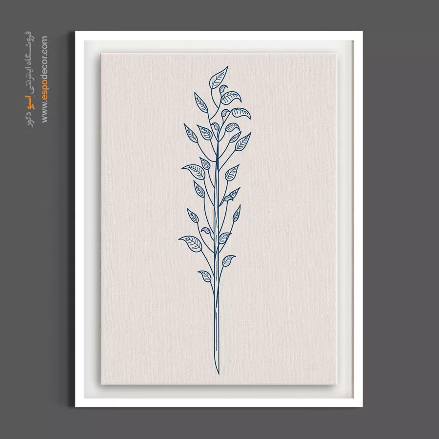 این تابلو فقط شامل برگهای کشیده و منظمی است که با خطوط ساده طراحی شدهاند. نبودن گل در این تابلو، آن را بسیار خنثی و آرامشبخش کرده است. این تابلو بهترین گزینه برای ست کردن در کنار تابلوهای گل یا پر کردن فضاهای خالی بین مبلمان است.