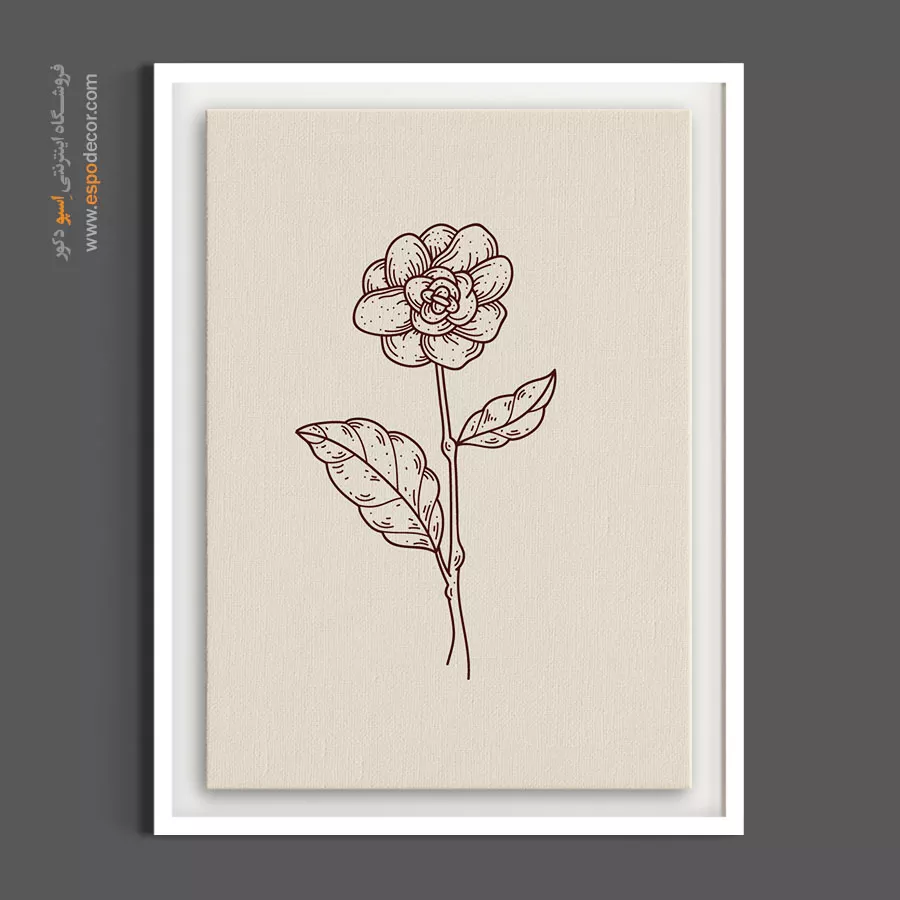 این تابلو با خطوطی نرم و روان، یک گل آلاله وحشی را به تصویر کشیده است. زمینه کرمرنگ (Beige) این تابلو، گرمای لطیفی دارد که از سردی فضای مینیمال میکاهد. این کار برای نصب بالای تخت خواب یا در کنار آباژورهای چوبی بسیار شیک است.