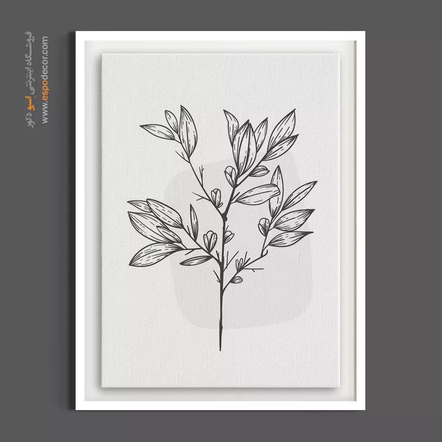 یک شاخه برگی که فرم زیبایی دارد. این تابلو بسیار خلوت و مینیمال است و بیشتر فضای تابلو را پر کرده است. برای کسانی که به دنبال آرامش بصری و سادگی مطلق هستند.