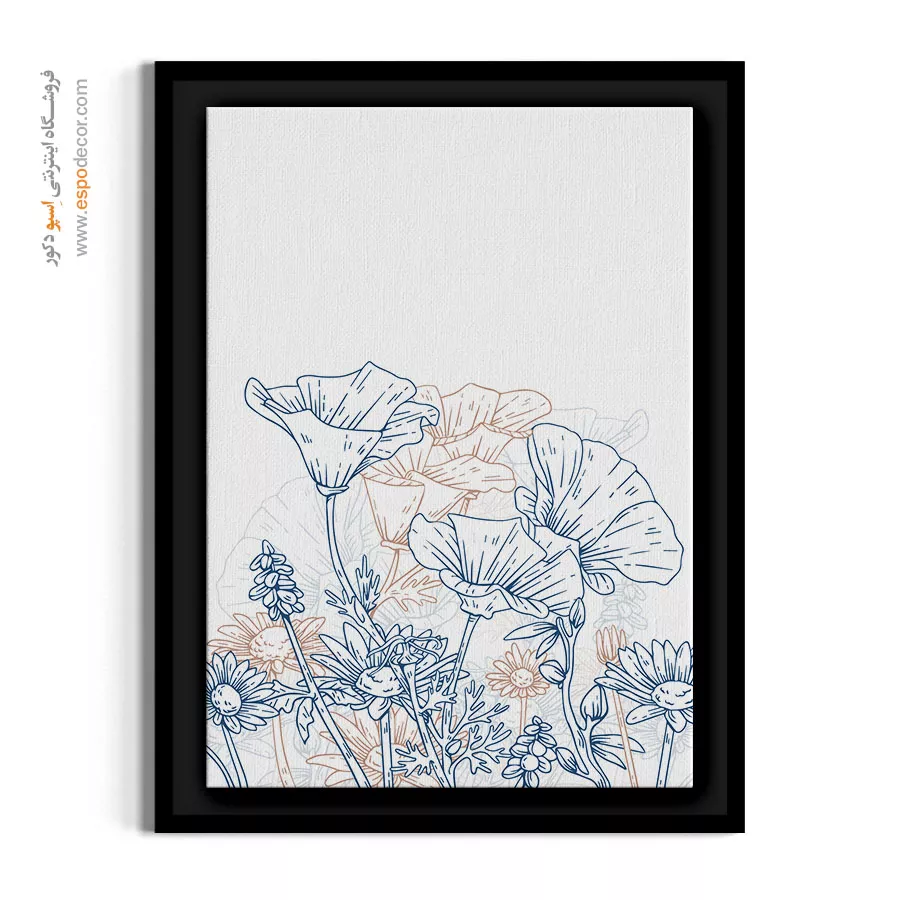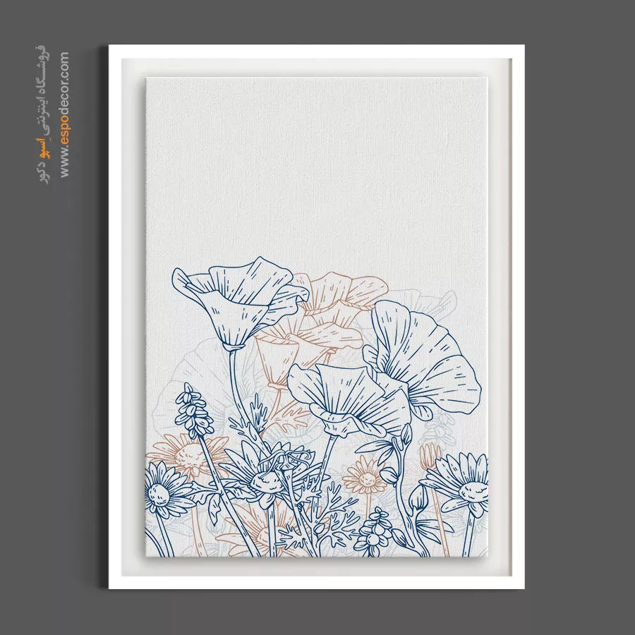 این تابلو بوم، یک مرزِ شلوغ و متراکم از گلها و گیاهان را در قسمت پایین کادر به تصویر میکشد که تجسمی از یک باغچهی وحشی و رهاست. ترکیب گلهای برجسته (مانند شقایق کالیفرنیا) با پسزمینهای محو و بوکه، حسی از عمق، تراکم طبیعی و پویایی را ایجاد کرده است. هنرمند با تمرکز بر روی جزئیاتِ گلهایِ پیشزمینه، نگاه بیننده را به سویِ زیباییِ شکوفایی هدایت میکند. بافت طبیعی پارچه بوم کنواس به این گیاهان جان بخشیده و سطح مات آن مانع از ایجاد بازتاب نور میشود تا اتمسفر آرام و ارگانیک طرح در تمام ساعات روز در خانه شما جاری باشد. این تابلو نمادی از رهایی و زیبایی در بینظمیهای طبیعت است.
