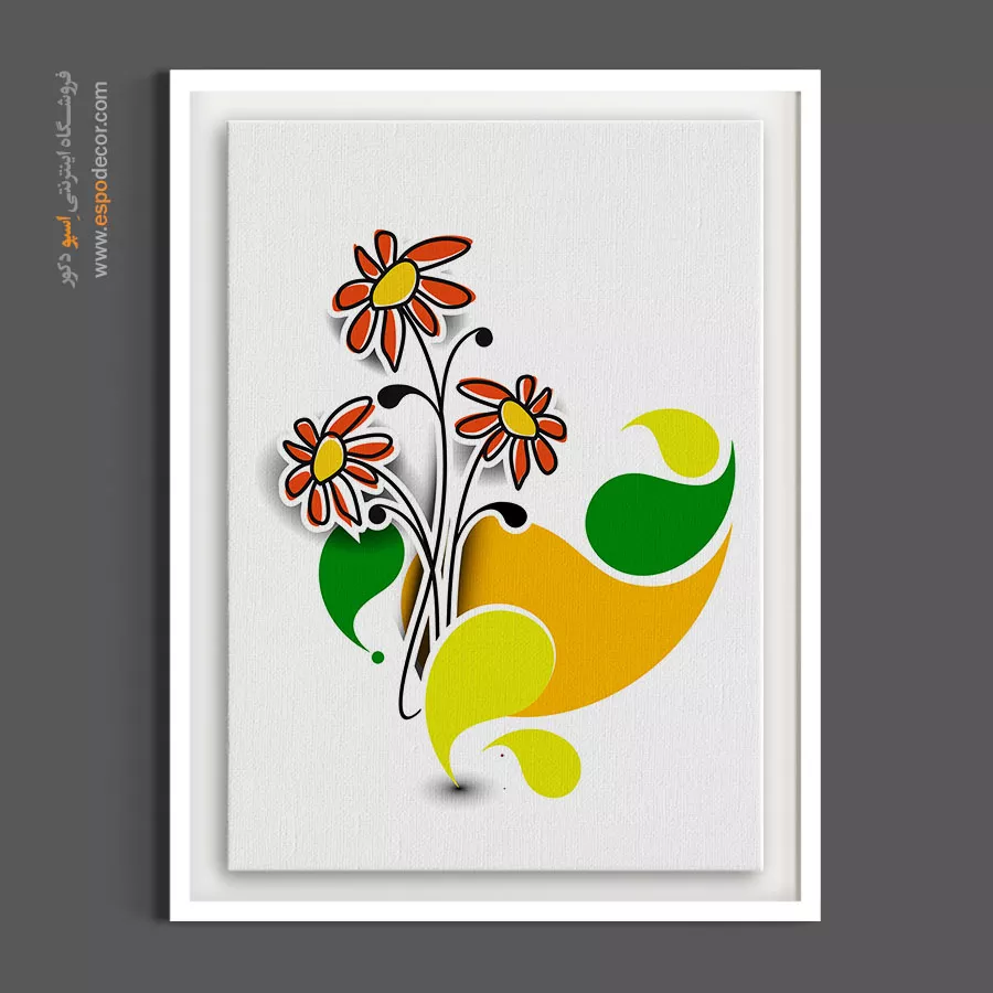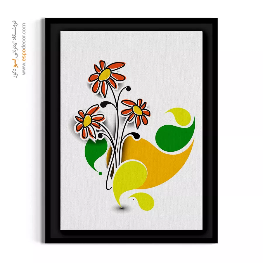 این تابلو با ترکیب گلهای نارنجی و فرمهای سیال زرد و سبز، یک حس گرم و پاییزی ایجاد میکند. سادگی خطوط و رنگهای زنده، آن را به یک انتخاب عالی برای فضاهایی که نیاز به انرژی مثبت و رنگهای گرم دارند، تبدیل کرده است.