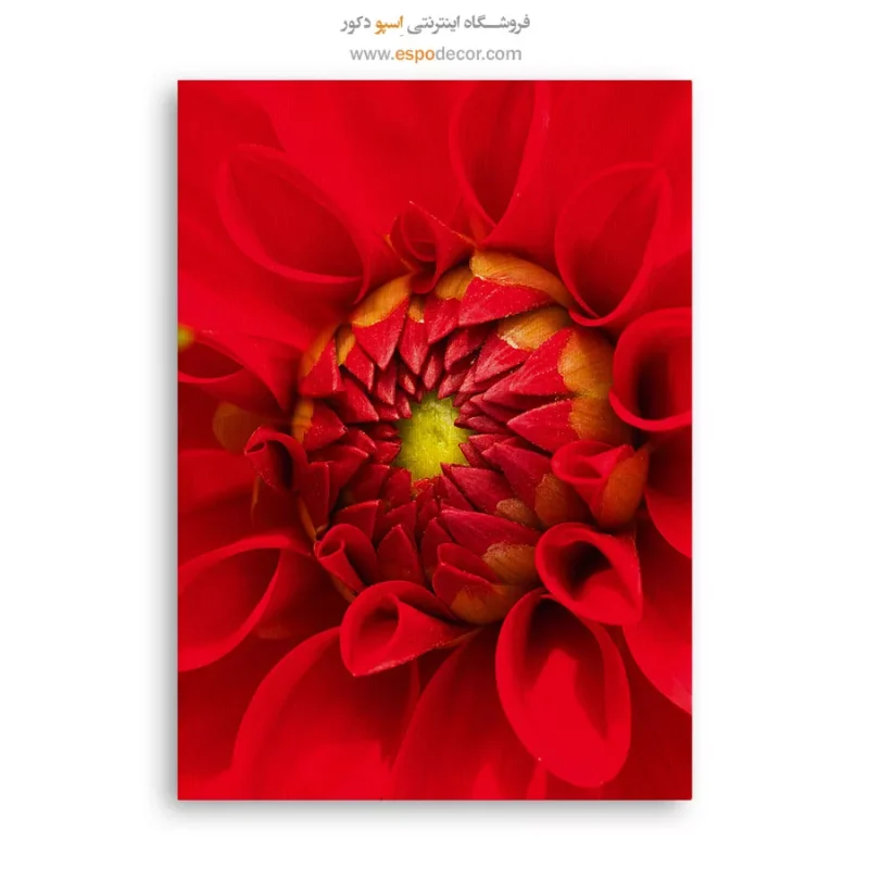 این تابلو با رنگ قرمز روشن و درخشان، یک جلوه بصری انفجاری ایجاد کرده است. پیچ‌وخم گلبرگ‌های اطراف و مرکز سبز-زرد، آن را به یک اثر هنری خیره‌کننده تبدیل می‌کند. مناسب برای ایجاد انرژی و اشتیاق در فضاهایی مانند آشپزخانه یا رستوران.
