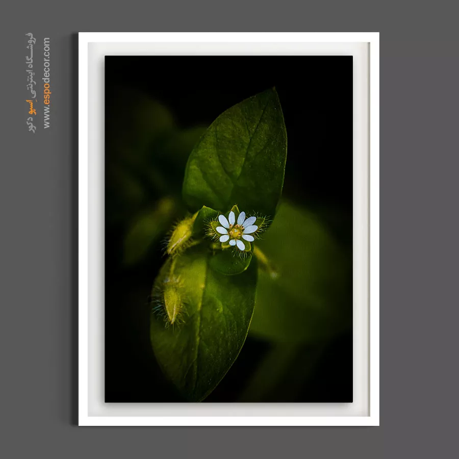 این تابلو بوم با تمرکز بر روی ظرافت و زیباییِ گل‌های ریز در دلِ طبیعت، حسی سرشار از صمیمیت و آرامش را به فضای شما می‌بخشد. ویژگی برجسته‌ی این اثر، بهره‌گیری از کنتراستِ شدید میان نور و تاریکی است که یک نقطه‌ی کانونیِ آرام و در عین حال بسیار قدرتمند بر روی دیوار ایجاد کرده است. هنرمند با ثبتِ عبورِ باریکه‌های نور از میان گلبرگ‌های مینیاتوری، فضایی شاعرانه و هنری خلق کرده است که نگاه هر بیننده‌ای را به سوی خود می‌کشد. بافت طبیعی پارچه بوم نقاشی به این کنتراستِ بصری غنا بخشیده و سطح مات بوم اجازه می‌دهد تا سنگینی و وقار طرح در تمام ساعات روز حفظ شود. این تابلو نمادی از زیباییِ نهفته در جزئیاتِ طبیعت است.