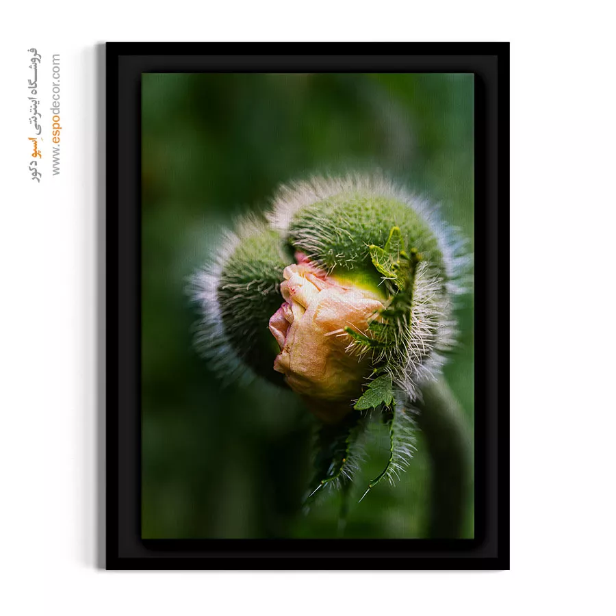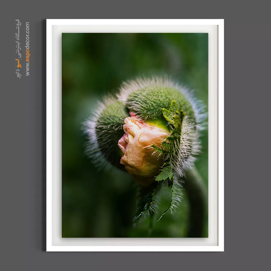 این تابلو با تمرکز بر بافتهای خاص و پرزدار غنچه، یک زیبایی خاموش و طبیعی را نمایش میدهد. این اثر با سبک ماکرو، عمق و جذابیت خاصی به دکوراسیونهای با تم گیاهشناسی میبخشد و کنتراست رنگی ملایمی دارد.
