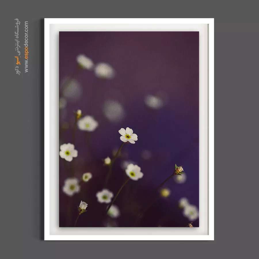 این تابلو بوم با تمرکز بر ظرافتِ ساقه و زیباییِ مینیاتوریِ گلهای کوچک سفید، یک اثر هنری مینیمال و در عین حال بسیار لوکس خلق کرده است. کنتراستِ قدرتمند میان سفیدیِ پاکِ گلها و پسزمینهی بنفشِ شرابیِ عمیق، جلوهای دراماتیک، اشرافی و باوقار به این اثر بخشیده است. هنرمند با حذف جزئیاتِ اضافی، بر روی خلوصِ فرم و رنگ تمرکز کرده تا آرامشی مقتدرانه را به فضای شما منتقل کند. بافت طبیعی پارچه بوم نقاشی به رنگ شرابی عمق بخشیده و سطح مات بوم مانع از ایجاد بازتاب نور میشود تا شکوهِ این تضادِ رنگی در تمام ساعات روز حفظ شود. این تابلو نمادی از تجملِ مینیمال است.