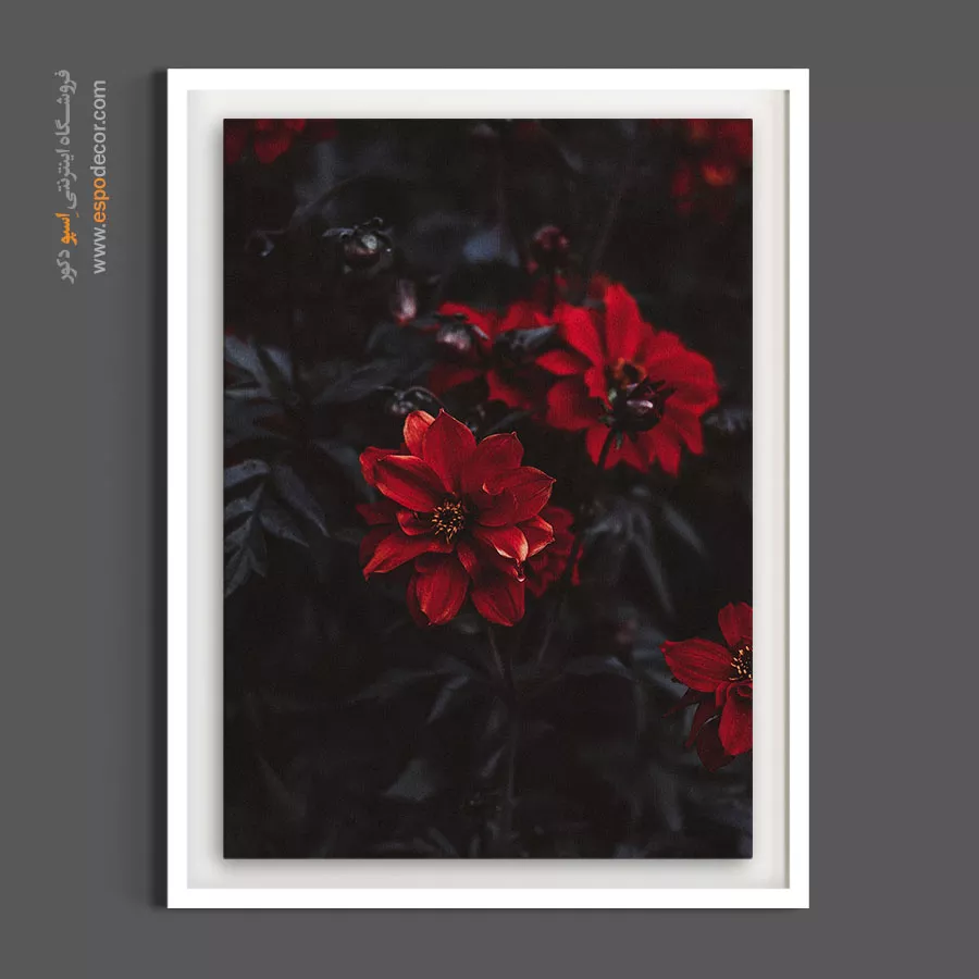 این تابلو یک اثر هنری پرکنتراست و احساسی است که با نمایش قرمزی عمیق گل در تاریکی، حسی از عشق، قدرت و شکوه کلاسیک را منتقل میکند. این طرح لوکس، انتخابی ایدهآل برای اتاقهای مستر، فضاهای پذیرایی رسمی و رستورانهای لوکس است.