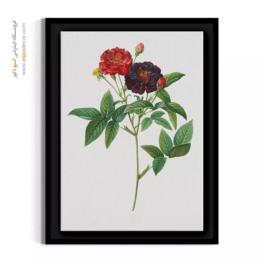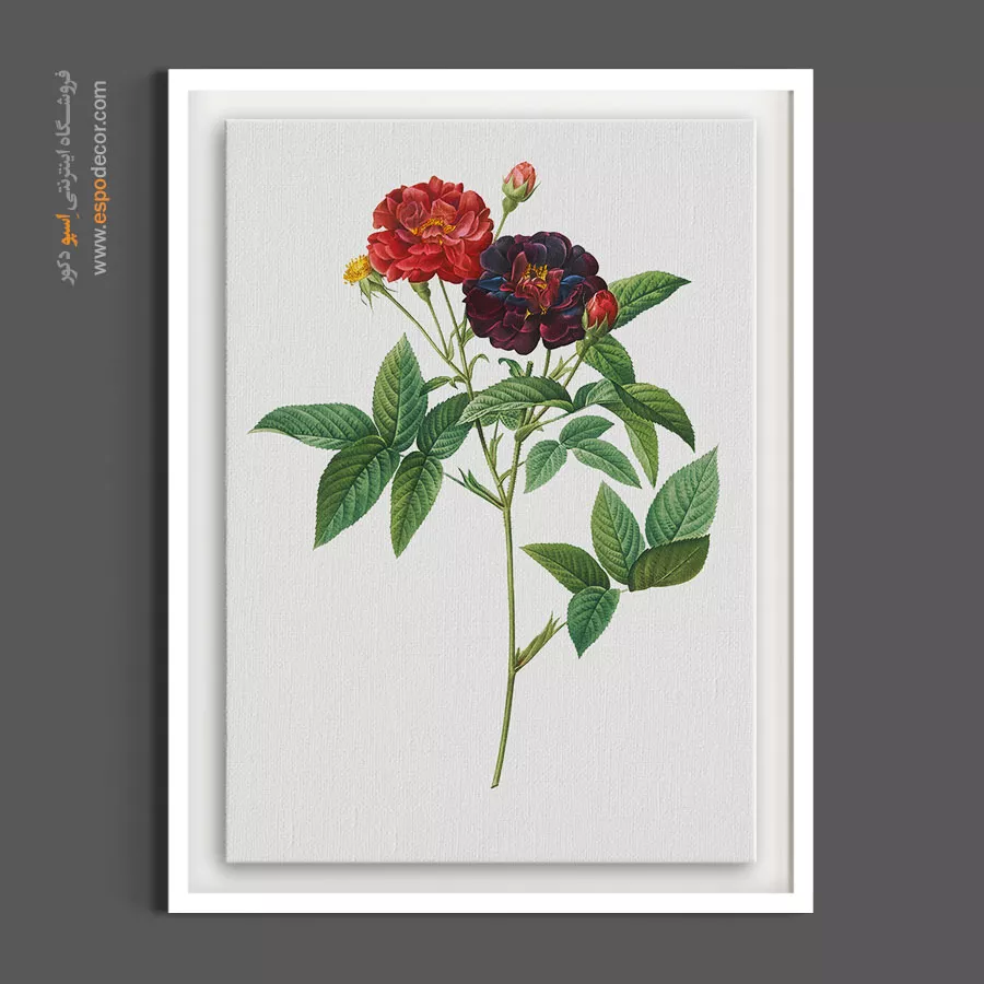 این تابلو یک اثر فوقالعاده لوکس و پرمعنا است که با نمایش تضاد عشق (قرمز) و رمزآلودگی (ارغوانی تیره)، جذابیتی بینظیر ایجاد میکند. کیفیت طراحی گیاهشناسی، آن را به یک قطعه گالریمانند تبدیل کرده که برای فضاهای پذیرایی با دکوراسیون کلاسیک، کتابخانههای رسمی، یا اتاقهای مستر با تم رنگی تیره ایدهآل است.