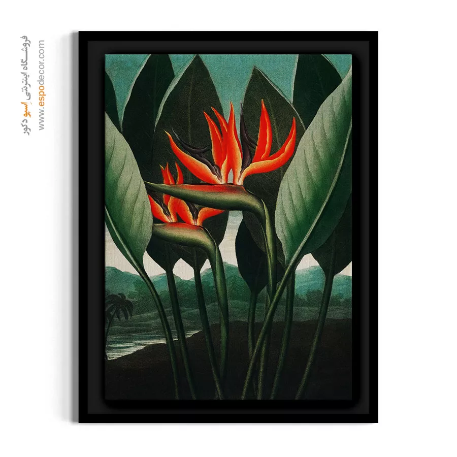 این تابلو یک اثر هنری متمایز، پرانرژی و مجلل است که با نمایش گلهای منحصر به فرد پرنده بهشتی، حسی از جنگلهای استوایی و تابستان بیانتها را منتقل میکند. کنتراست قوی بین رنگهای آتشین گلها و رنگهای تیره برگها و پسزمینه، آن را به یک قطعه برجسته برای دفاتر کاری خلاقانه، فضاهای بوهو، یا رستورانها و هتلهای با تم گرمسیری تبدیل کرده است.