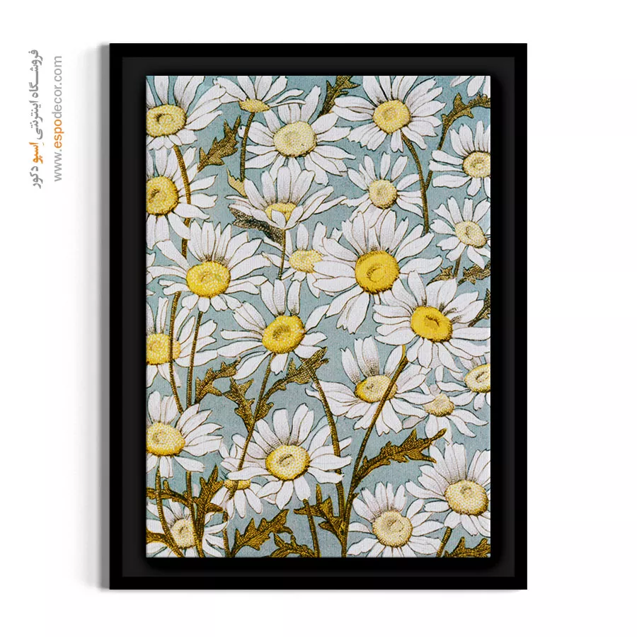 این تابلو یک اثر ظریف و الگودار است که حسی از طبیعت، سادگی زیبا و رمانتیسم قدیمی را منتقل می‌کند. تکرار گل‌های بابونه (نماد معصومیت) و ترکیب رنگی خنثی و پاستلی، آن را انتخابی عالی برای اتاق خواب‌های رمانتیک، اتاق‌های کودک، یا فضاهای ناهارخوری با تم قدیمی می‌سازد.