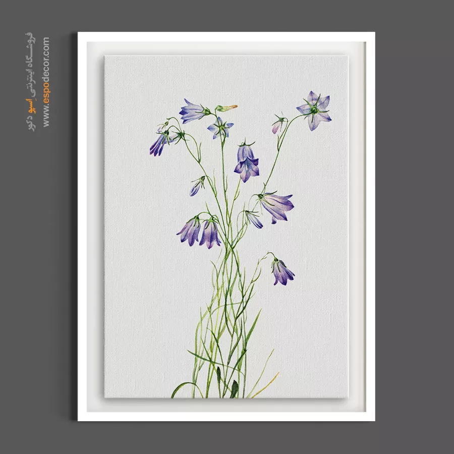 این تابلو یک اثر بسیار ظریف، سبک‌بال و رمانتیک است که با نمایش گل‌های زنگوله‌ای وحشی، حسی از لطافت، آرامش و طبیعت دشت را منتقل می‌کند. رنگ‌های بنفش و آبی پاستلی آن را انتخابی عالی برای اتاق خواب‌ها، حمام‌های با دکوراسیون شیک، یا فضاهای با تم روستیک (Cottagecore) و رمانتیک می‌سازد و به دلیل رنگ ملایم، به راحتی با هر پالت رنگی هماهنگ می‌شود.
