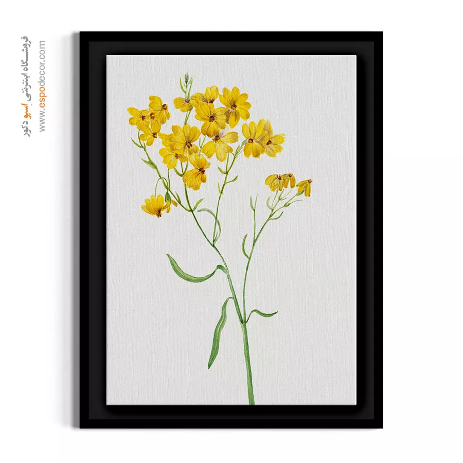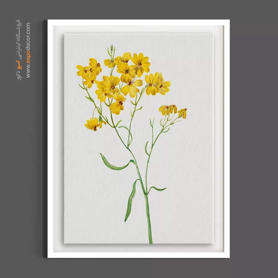 این تابلو بوم با نمایشِ رنگ زردِ درخشان و پرانرژیِ گل، یک عنصر بصریِ شاداب و دلنشین خلق کرده است که حسی از نور، گرما و طبیعتِ وحشی را به فضای شما میآورد. اجرای ظریف و دقیقِ سبکِ گیاهشناسی در این اثر، به طرح وقار و اصالتی خاص بخشیده و آن را از یک تصویر ساده فراتر برده است. هنرمند با تمرکز بر روی جزئیاتِ مرکزِ گل و بافتِ گلبرگها، سرزندگی و حیات را به تصویر کشیده است. بافت طبیعی پارچه بوم نقاشی به رنگ زرد عمق بخشیده و سطح مات بوم مانع از ایجاد بازتاب نور میشود تا درخششِ گرمِ طرح در تمام ساعات روز حفظ شود.