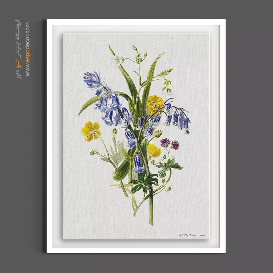این نقاشی که قدمت آن به سال ۱۸۹۵ برمیگردد، لطافت یک دسته گل چیده شده از دشتهای بهاری را به تصویر میکشد. ترکیب رنگ آبی و زرد، حسی از شادی و معصومیت دارد. این تابلو برای اتاق مهمان، آشپزخانههای آفتابگیر و اتاق خوابهایی با تم روشن و گلگلی بسیار مناسب است و حس قدم زدن در طبیعت را زنده میکند.