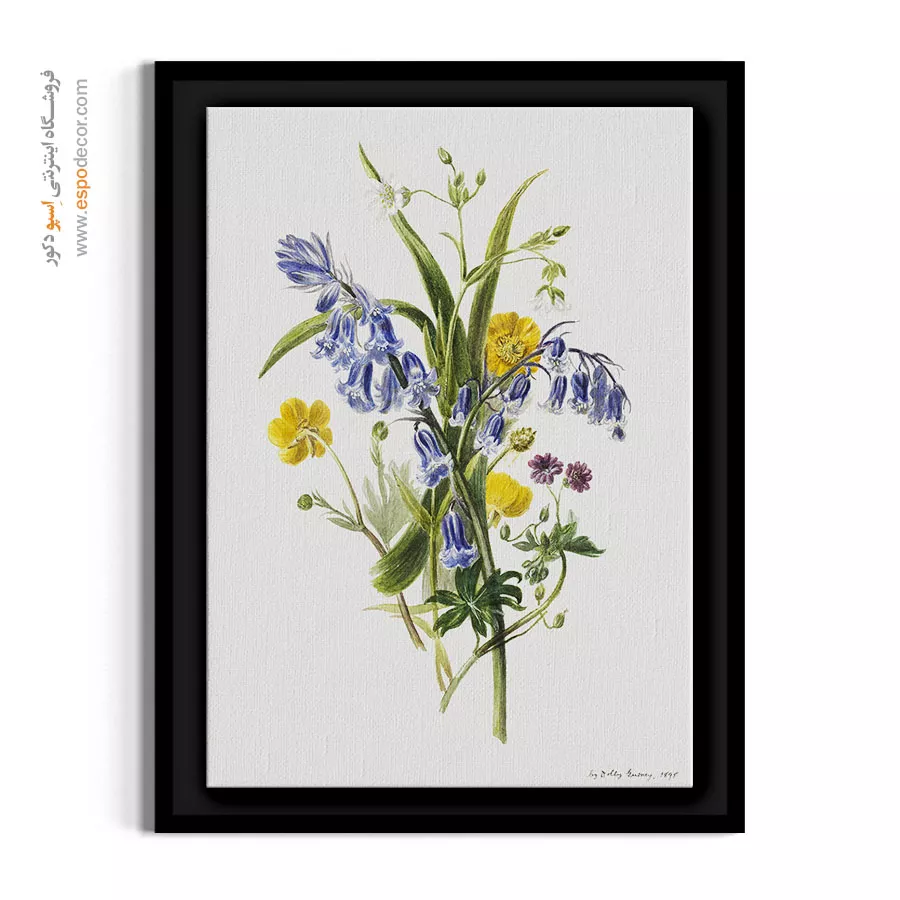 این نقاشیِ دلنشین که قدمت آن به سال ۱۸۴۰ برمیگردد، لطافت و معصومیتِ یک دسته گل چیده شده از دشتهای بهاری را به تصویر میکشد. ترکیبِ رنگهای آبی و زرد در این اثر، حسی از شادی، پاکی و نسیمِ خنکِ بهار را به بیننده منتقل میکند. هنرمند با سبکِ نقاشیِ قدیمی، فضایی نوستالژیک و صمیمی خلق کرده است که یادآور خاطراتِ شیرینِ گذشته و قدم زدن در طبیعت است. بافت طبیعی پارچه بوم نقاشی به این طرحِ تاریخی هویت بخشیده و سطح مات بوم مانع از ایجاد بازتاب نور میشود تا آرامش و زیباییِ بیآلایشِ گلها در تمام ساعات روز در خانهی شما جاری باشد.