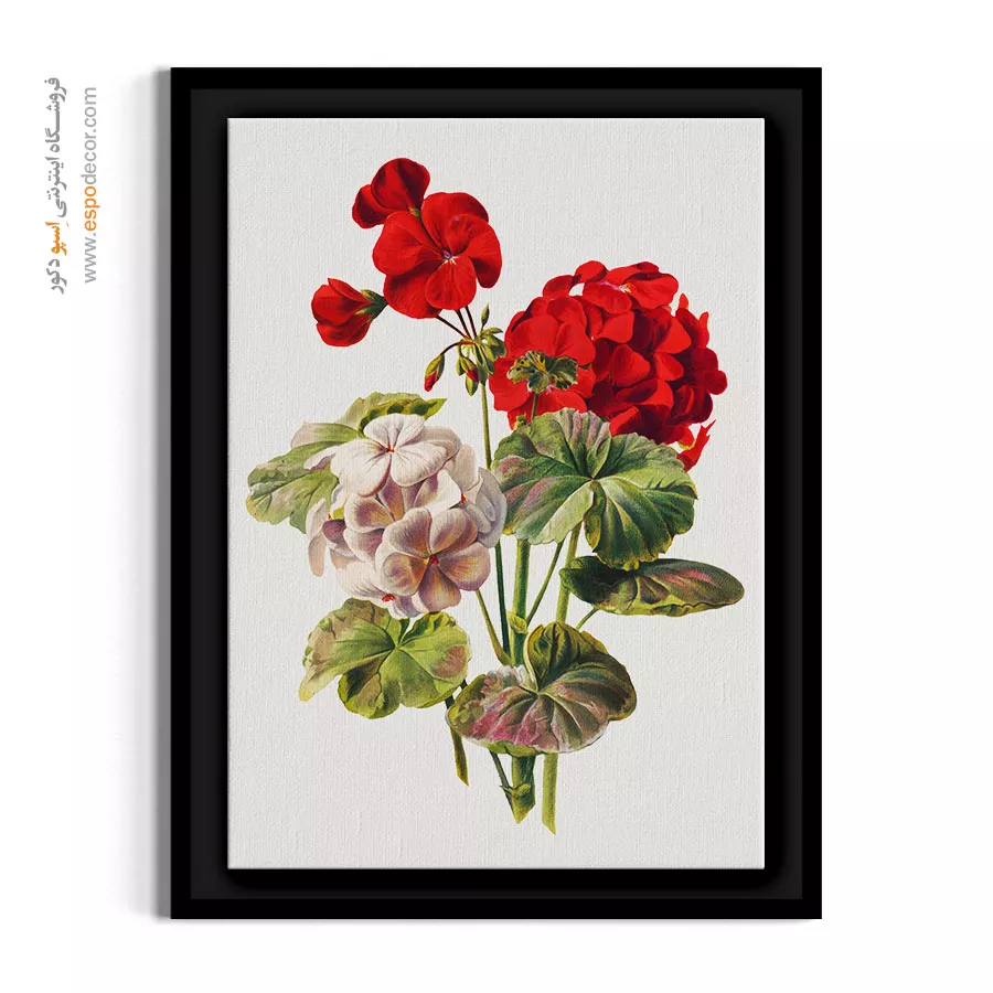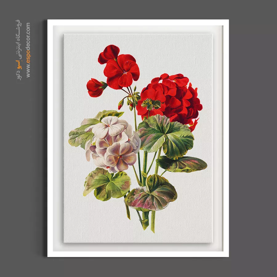 شمعدانی نماد خانههای اصیل و صمیمیت قدیمی است. در این تابلو، تضاد رنگ قرمز پرشور و سفید ملایم در کنار برگهای سبز مخملی، ترکیبی چشمنواز ساخته است. این اثر برای تراسها (بالکن)، آشپزخانههای نورگیر و رستورانهای سنتی که میخواهند حس گرما و زندگی را منتقل کنند، انتخابی بینظیر است.