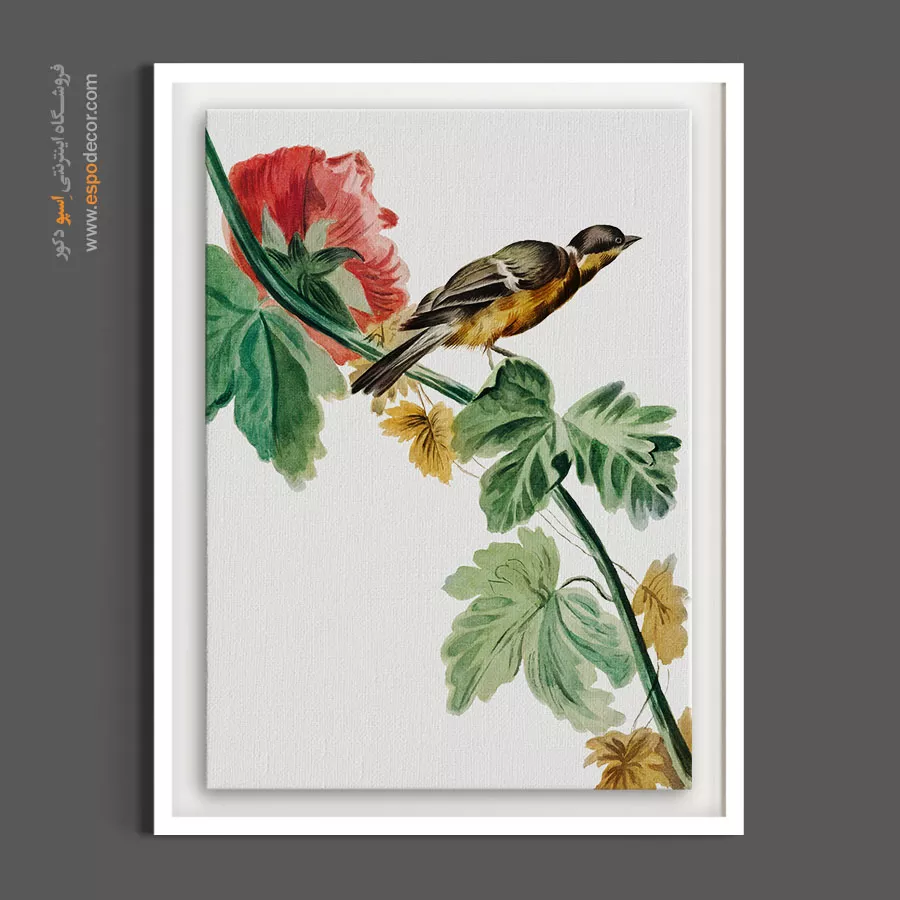پرنده و گل ختمی – تابلو گل