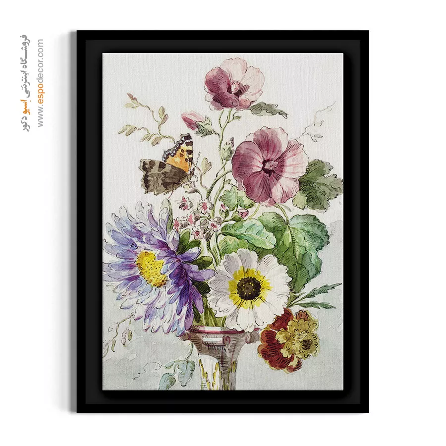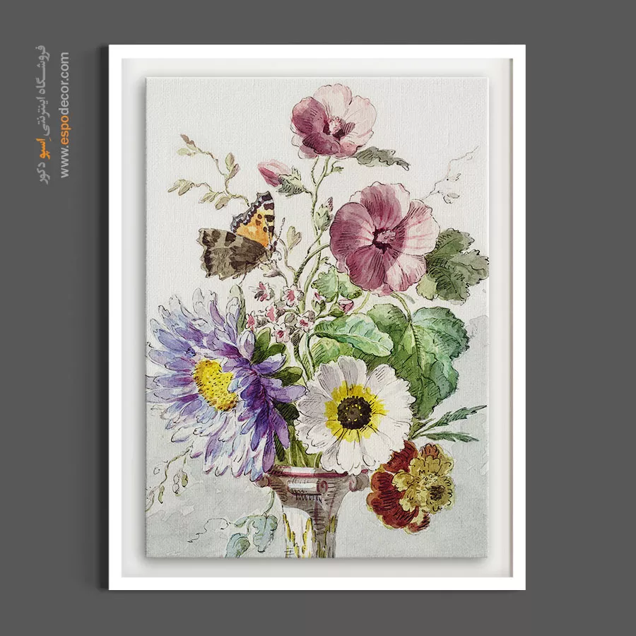 گلدان گلهای تابستانی و پروانه – تابلو گل