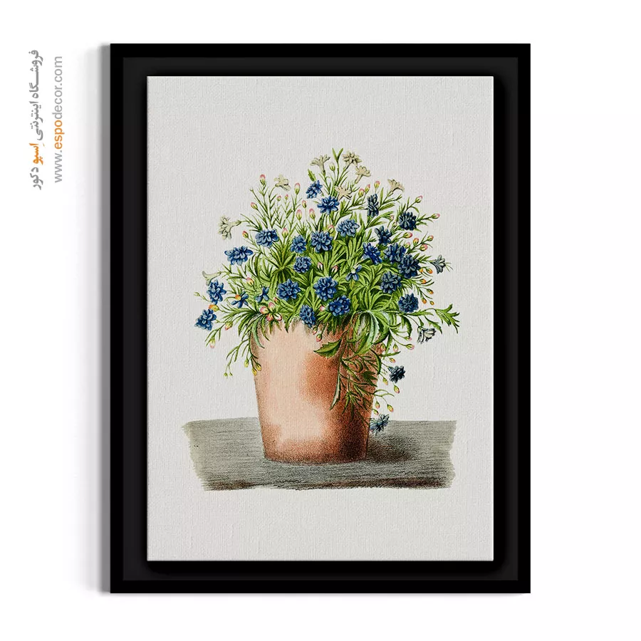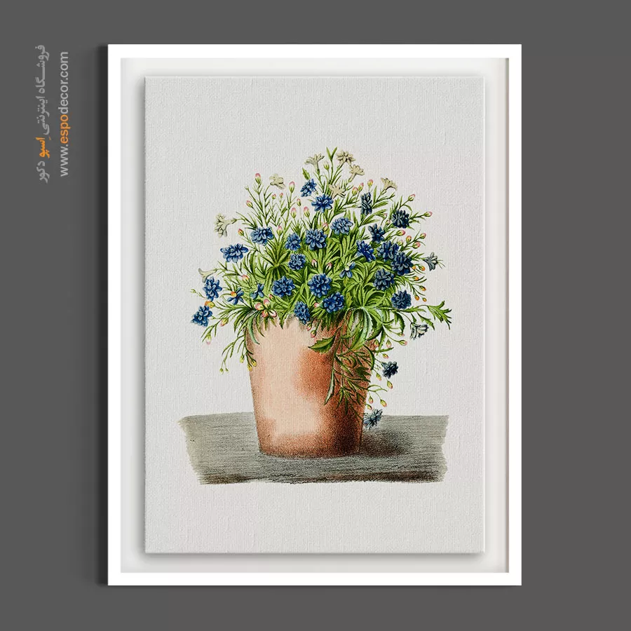 این نقاشی حس طراوت یک ایوان روستایی را به خانه میآورد. گلدان سفالی ساده که پر از گلهای آبی ریز و پرپشت است، نمادی از زیباییهای ساده زندگی است. رنگ آبی گلها آرامشبخش و رنگ آجری گلدان گرم است. این تابلو برای آشپزخانه، فضای گلخانه یا پاسیو و اتاقهایی با دکوراسیون چوبی و روستیک انتخابی فوقالعاده است.