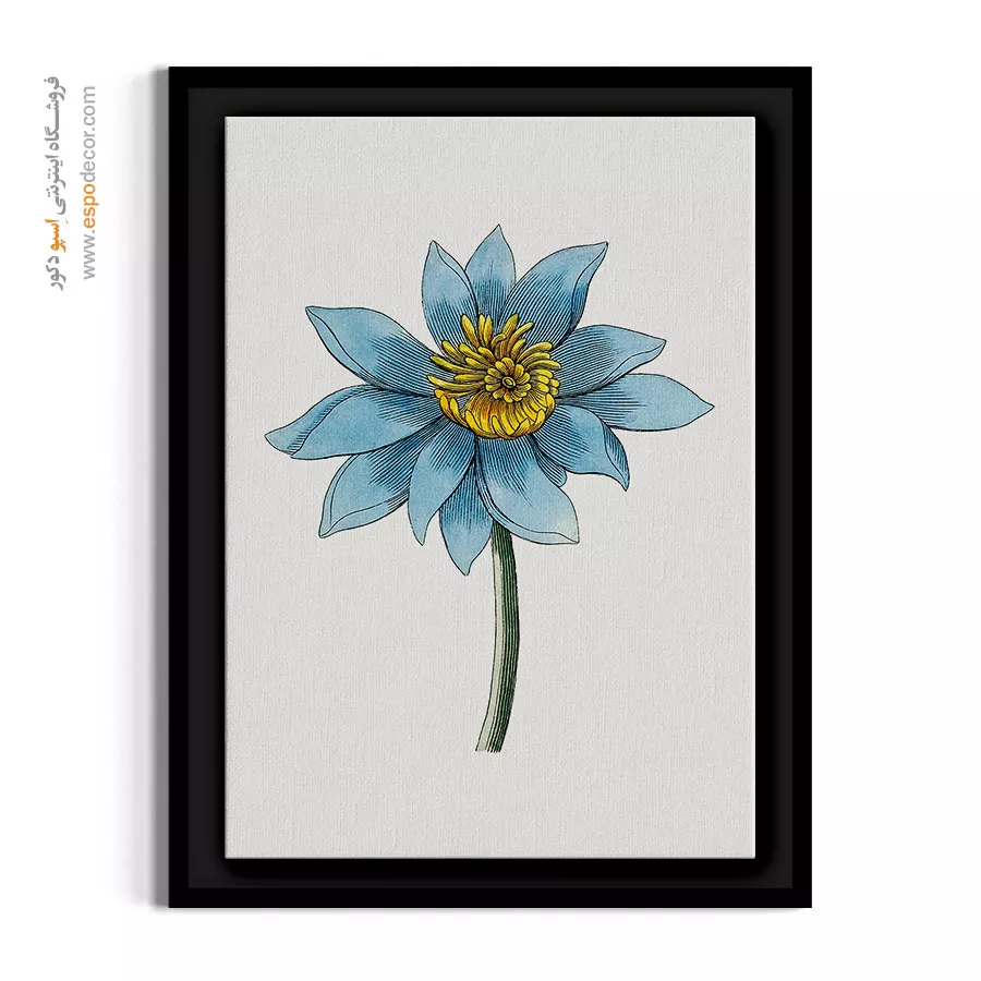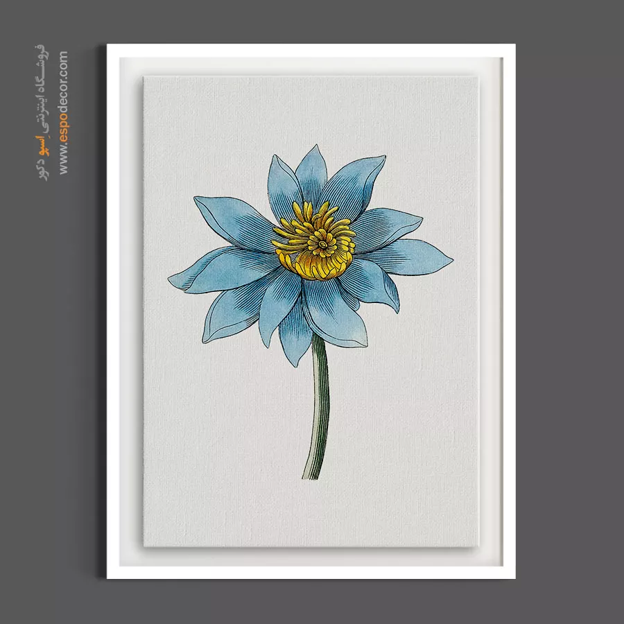 این نقاشی گیاهشناسی، زیبایی بینظیر گل «شقایق آبی» را با گلبرگهای باز و مرکز پرجزییات زرد و طلاییاش به تصویر میکشد. تضاد میان رنگ آبی سرد گلبرگها و مرکز گرم گل، جلوهای بسیار لوکس و چشمنواز دارد. این تابلو به دلیل استایل وینتیج و فرم عمودیاش، برای ستونهای خانه، اتاق خواب و یا ایجاد یک نقطه کانون آرامشبخش در دکوراسیونهای چوبی انتخابی فوقالعاده است.