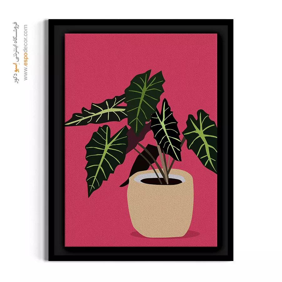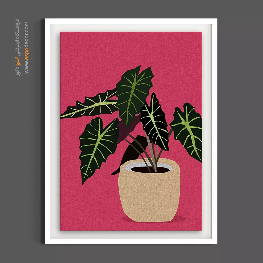 این اثر هنری، روایتی مدرن و مینیمالیستی از گیاه محبوب «آلوکازیا آمازونیکا» است که با تکنیک تخت (Flat Art) خلق شده است. تضاد جسورانه میان برگ‌های سبز تیره با رگ‌برگ‌های روشن و هندسی در مقابل پس‌زمینه صورتیِ پرانرژی، جذابیتی گرافیکی، پاپ‌آرت و معاصر به اثر بخشیده است. این تابلو با توجه به نگاه معمارانه در انتخاب سوژه و رنگ، گزینه‌ای متمایز برای فضاهای مدرن، آتلیه‌ها، اتاق نوجوانان و دکوراسیون‌هایی است که به دنبال یک نقطه کانونی جسورانه و سرشار از پویایی رنگی هستند.