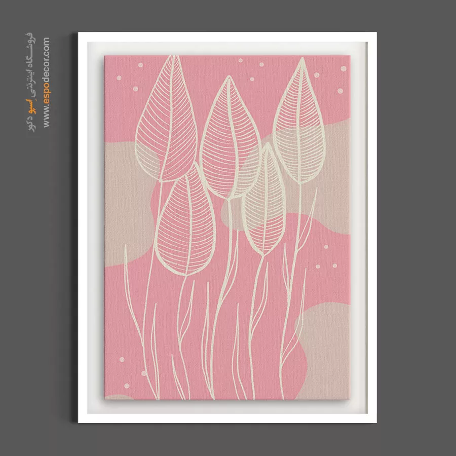 این اثر هنری، قطعهای سرشار از آرامش و ظرافت بصری است که با زبانی مینیمالیستی، فرم ارگانیک برگها را به تصویر میکشد. خطوط سفید و هندسی رگبرگها در تقابل با پسزمینه لایهلایه از رنگهای صورتی پودری، کرم و بژ، حسی از سبکی، تعادل و سیالیت را به بیننده منتقل میکنند. این تابلو با بهرهگیری از اشکال انتزاعی و نرم، اتمسفری رویایی و معاصر در فضا خلق کرده و به دلیل پالت رنگی پاستلی و هماهنگ خود، انتخابی هوشمندانه برای دکوراسیونهای نوردیک، اتاقهای استراحت و محیطهایی است که به دنبال لمسی از زیبایی مدرن و بیپیرایه هستند.