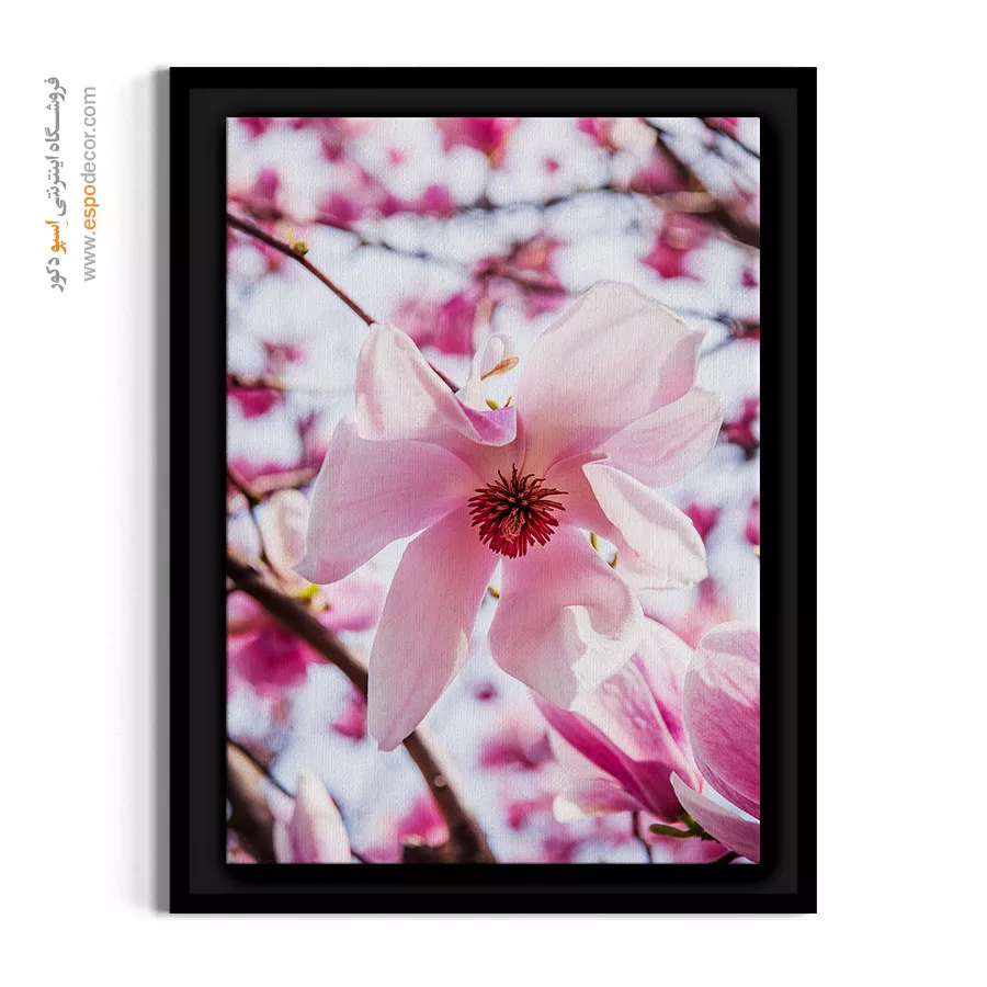 این اثر با عکاسیِ فاینآرت، لطافت و زیباییِ بینقصِ شکوفهی مگنولیا را در اوج درخششِ بهاری و با جزئیاتی خیرهکننده نمایش میدهد. تضادِ گلبرگهای پاستلی با مرکزِ ارغوانی و پرجزئیات در کنار پسزمینهی محو و روشن، حسی از عمق، نظم ارگانیک و آرامش بصری را القا میکند. این تابلوی باوقار و روشن، با تمرکز بر روی فرم و بافتِ گل، زیباییِ مینیمال طبیعت را جشن میگیرد. بافت طبیعی پارچه بوم نقاشی به این تصویرِ لطیف جان بخشیده و سطح مات بوم مانع از ایجاد بازتاب نور میشود تا حسِ تازگیِ بهار در تمام ساعات روز در محیط جاری باشد.