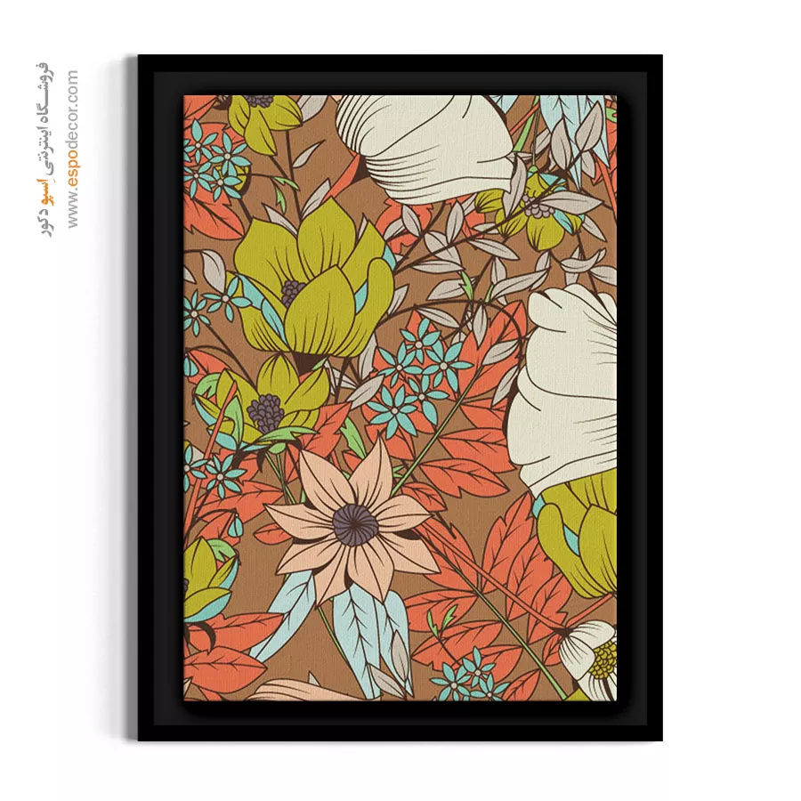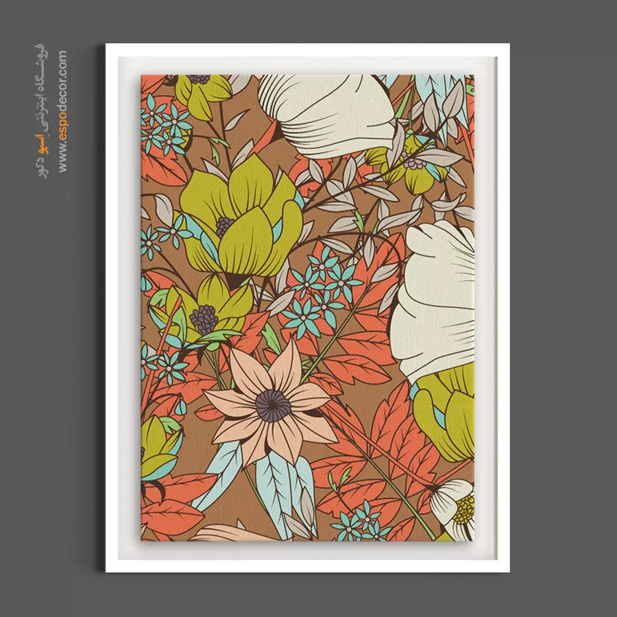 این اثر هنری با نمایشِ الگویی متراکم، پویا و تکرارشونده از گلهای فانتزی در طیف رنگیِ گرمِ نارنجی و سبز زیتونی بر روی پسزمینهی قهوهای خاکی، تضاد بصریِ چشمنواز و عمیقی ایجاد کرده است. تلفیق خطوط ظریفِ گرافیکی و فرمهای ارگانیک، حسی از وقار، اصالت و پیوند با زمین را به چیدمان داخلی تزریق میکند. این تابلو با پالت رنگیِ هماهنگ و نگاه معمارانه در طراحیِ الگو، انتخابی متمایز برای ارتقای هویت بصری در دکوراسیونهای مدرن، بوهو و نئوکلاسیک محسوب شده و اتمسفری دنج و صمیمی را در فضا خلق مینماید.