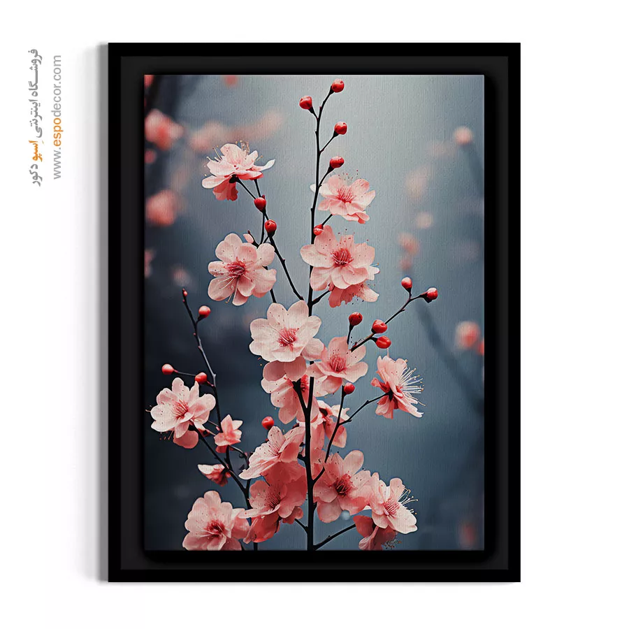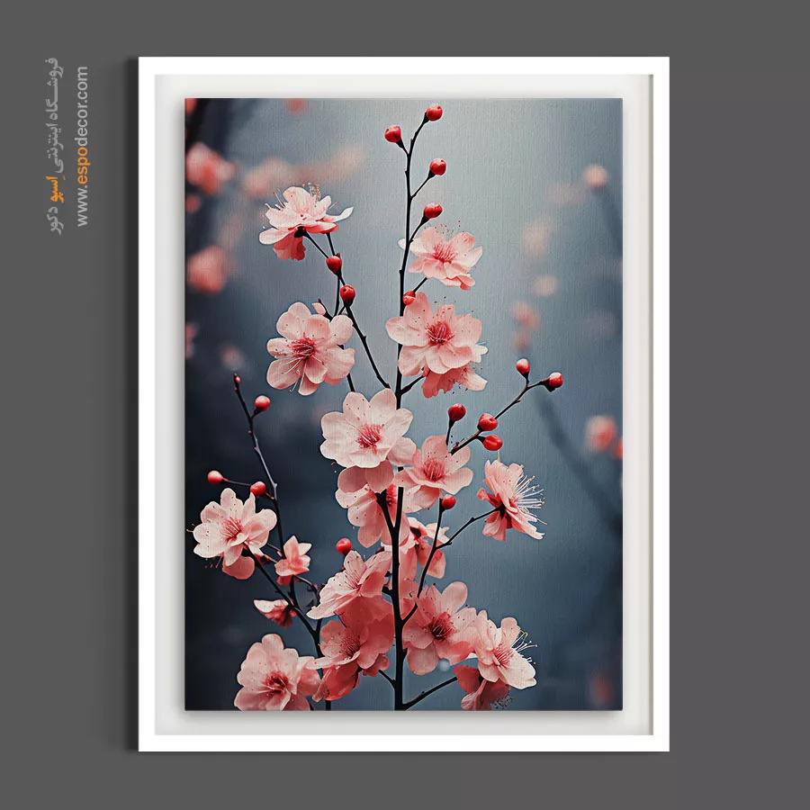 این اثر با بهره‌گیری از عکاسیِ هنریِ فاین‌آرت، شکوه و لطافتِ شکوفه‌های ساکورا (گیلاس) را در مقابل پس‌زمینه‌ای محو و رویایی به تصویر کشیده است. پالت رنگیِ صورتیِ ملایم و سفید، حسی از آرامش، پاکی و تجدید حیاتِ بهاری را به دکوراسیون تزریق می‌کند. ترکیب‌بندیِ عمودی و نگاهِ معمارانه در چیدمانِ شاخه‌ها، تعادلی زیبا میان طبیعت و هنر ایجاد کرده است. بافت طبیعی پارچه بوم نقاشی به این منظره‌ی لطیف عمق بخشیده و سطح مات بوم مانع از ایجاد بازتاب نور می‌شود تا آرامشِ بصریِ طرح در تمام ساعات روز حفظ شود.