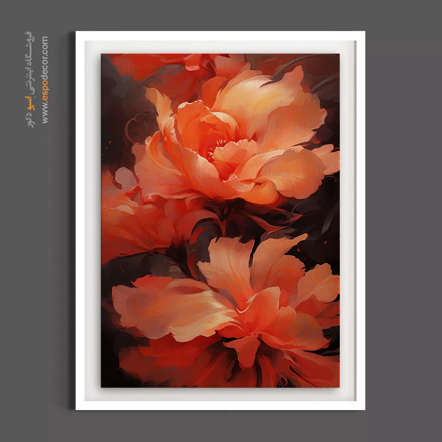 این شاهکار امپرسیونیستی با نمایش درخشان شکوفههای نارنجی در بستری از سایههای عمیق، روحی پرانرژی به دکوراسیون مدرن بخشیده و با تضاد بصری خیرهکننده، نقطهای کانونی و لوکس در پذیرایی خلق میکند که طبق استانداردهای معماری داخلی، اتمسفری باوقار و سرشار از اصالت هنری را در قلب فضای زندگی شما متجلی میسازد.